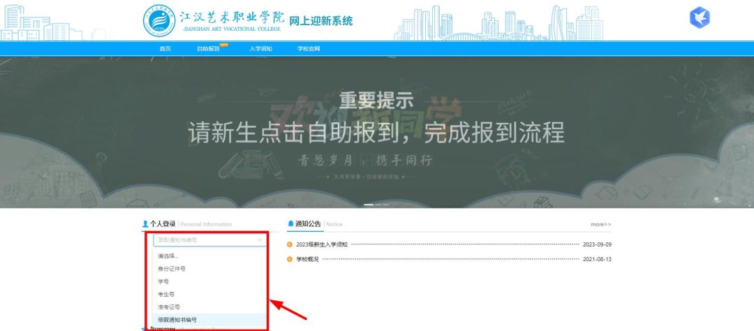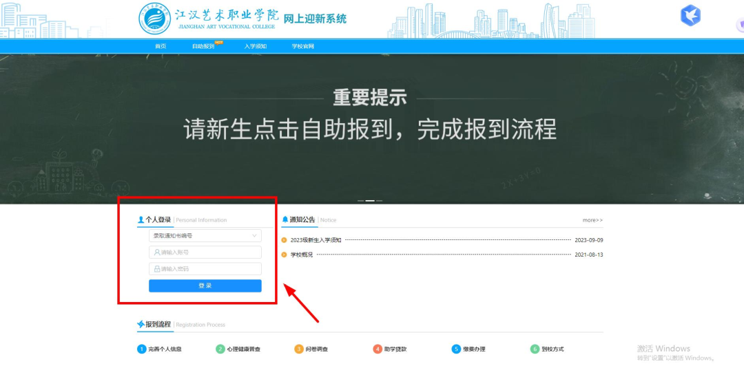 打开网上报到系统界面(电脑版)