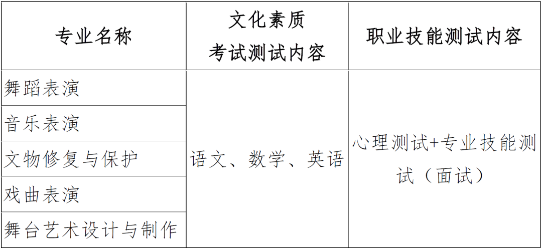 此次高职单招招生考试采取“文化素质+职业技能测试”的模式,具体各专业考试方式见下表