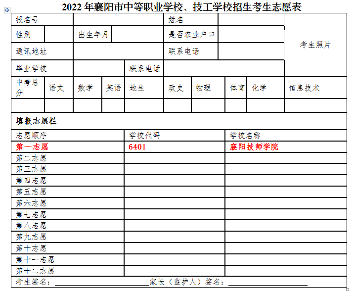 (2)若不愿就读普通高中,一心一意就读中等职业学校、技工学校的学生不能填报普通高中志愿。