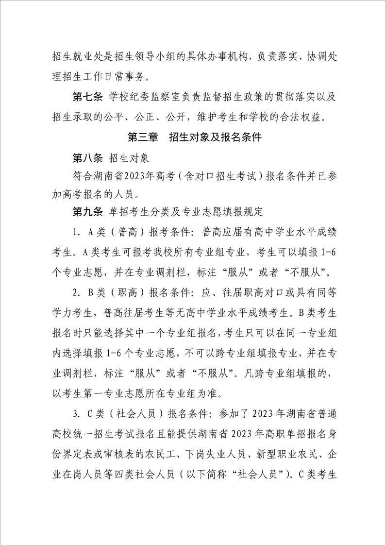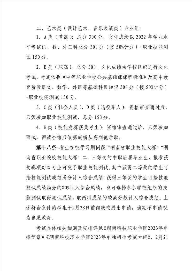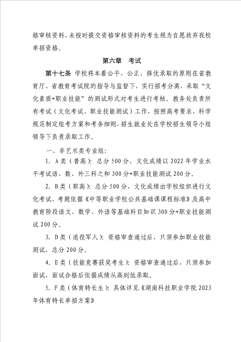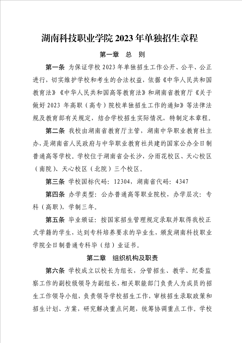 湖南科技职业学院2023年单独招生章程