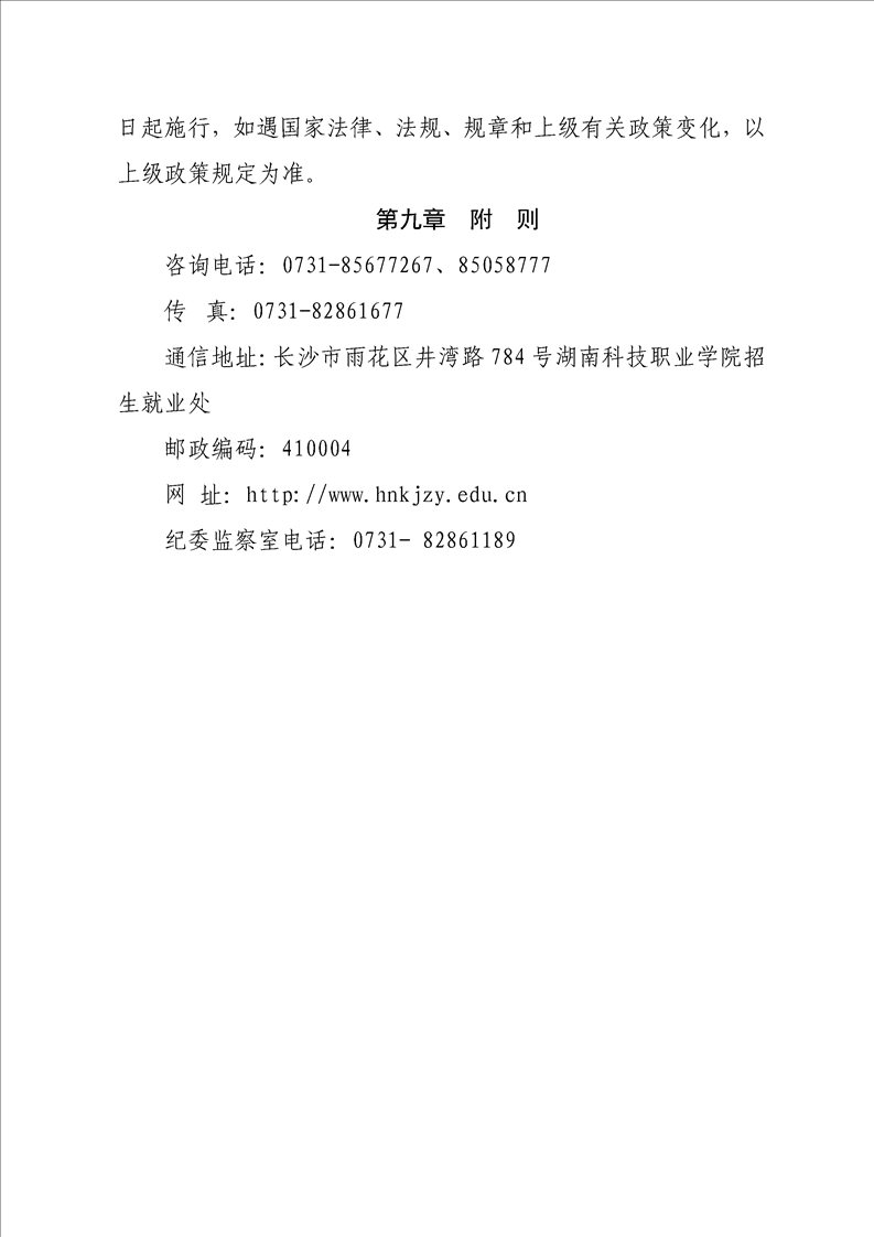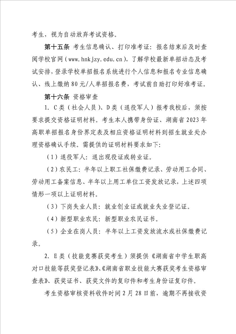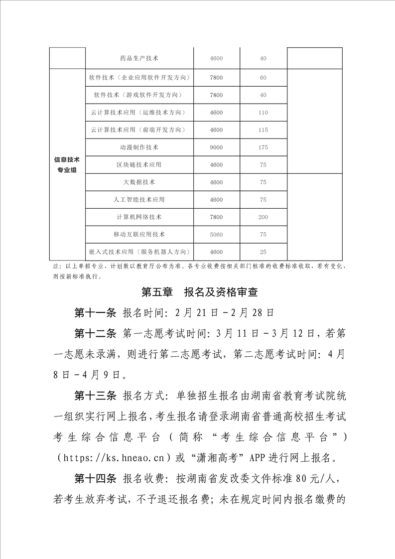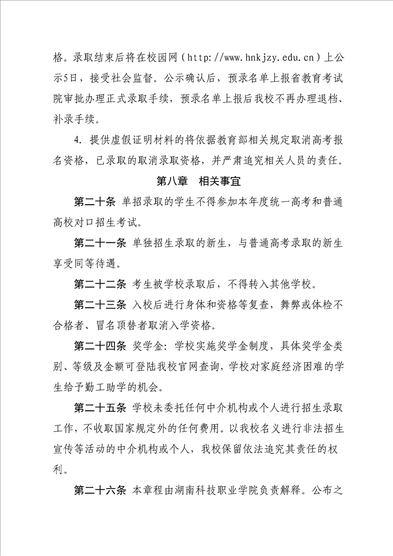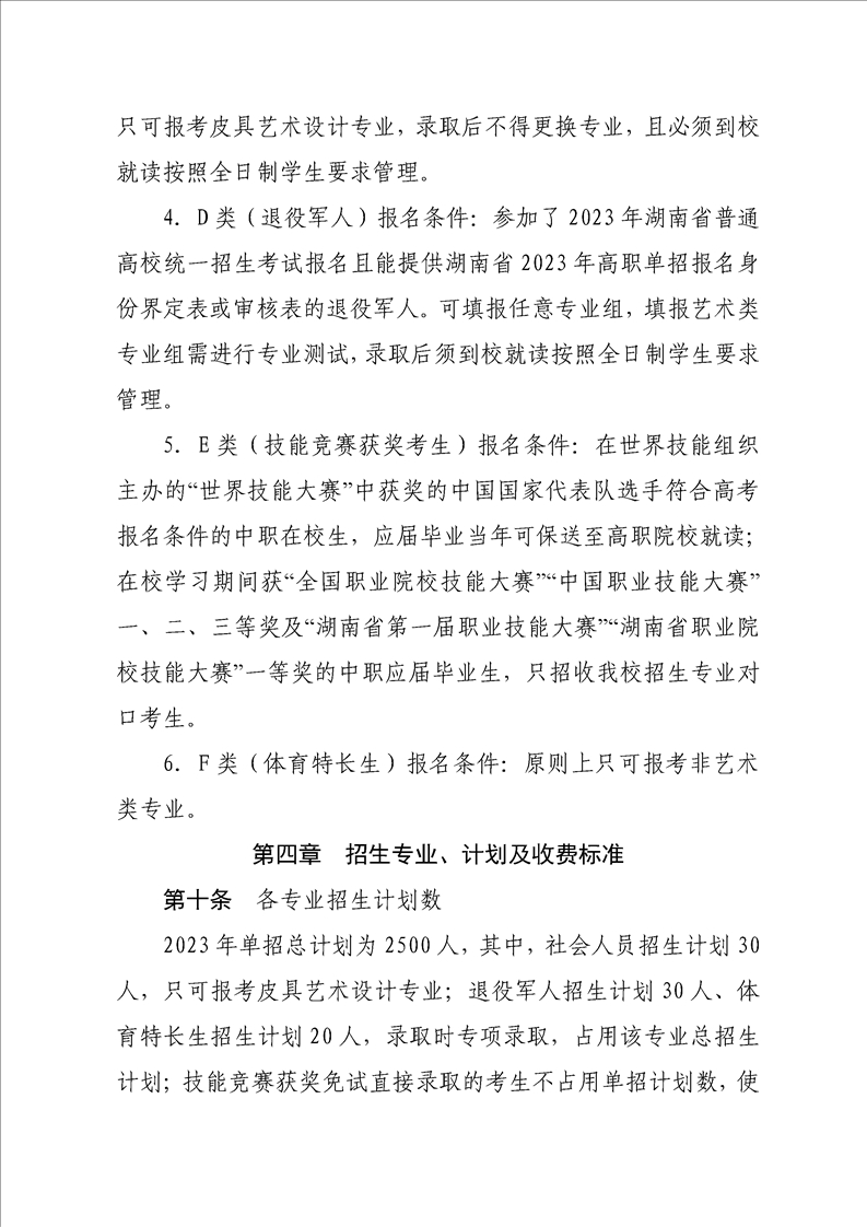 湖南科技职业学院2023年单独招生章程