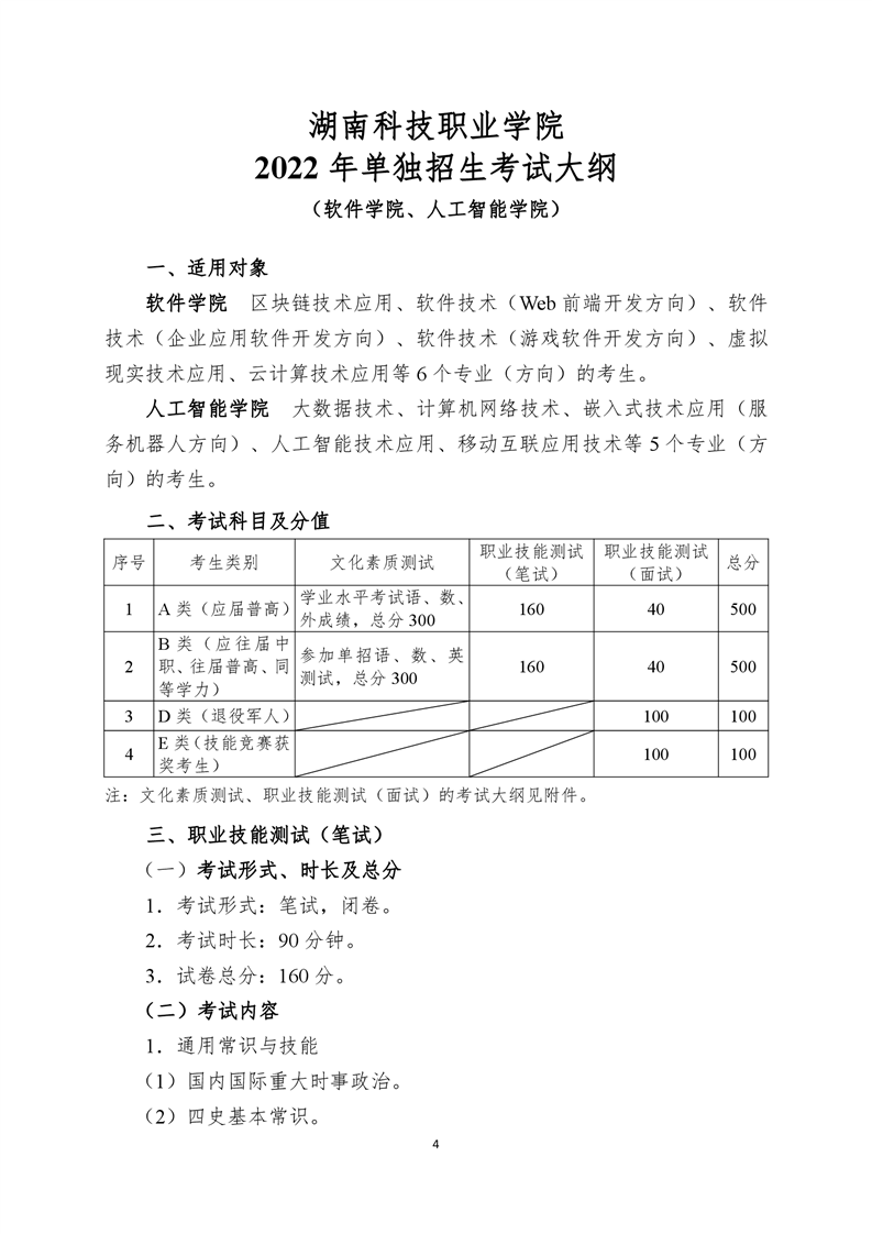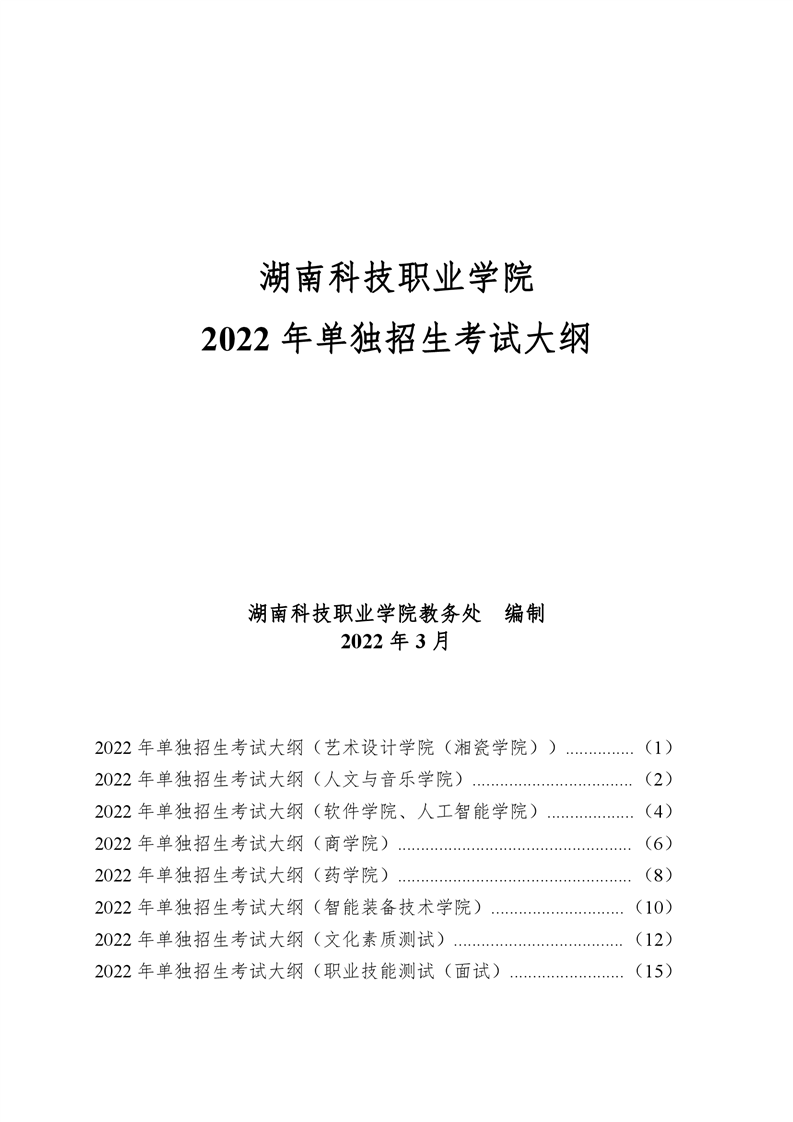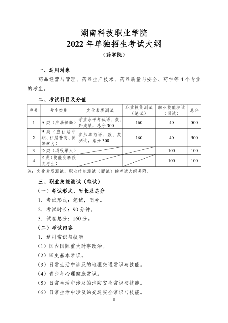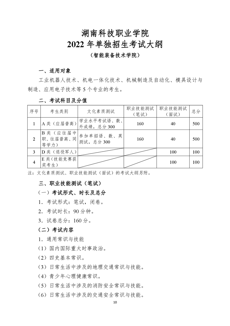 湖南科技职业学院2022年单独招生考试大纲.pdf