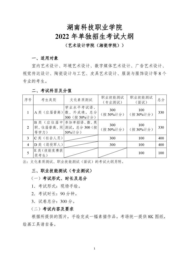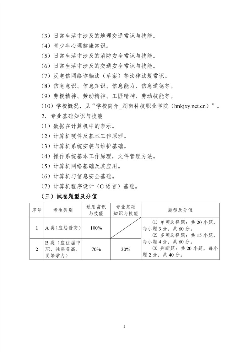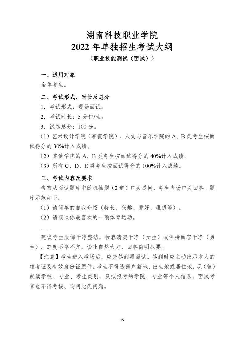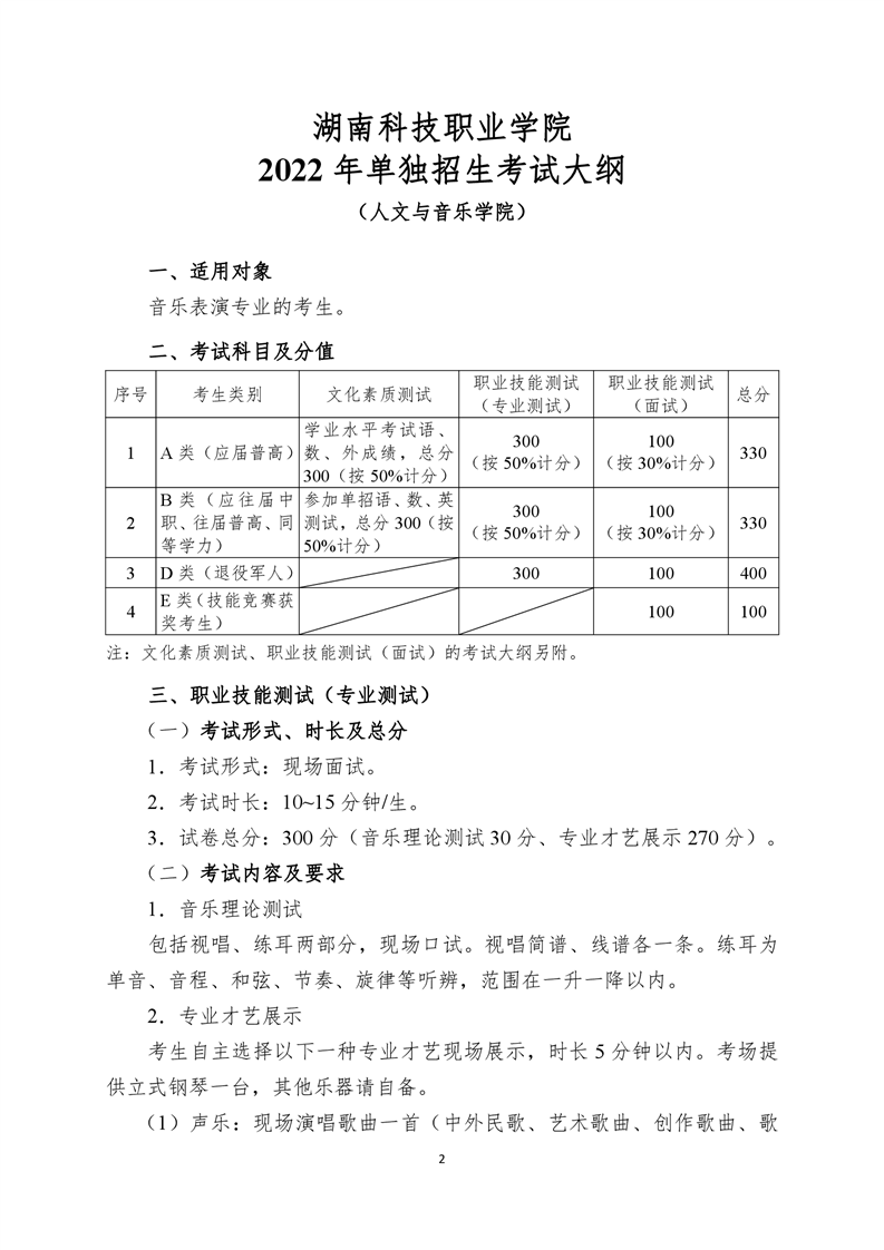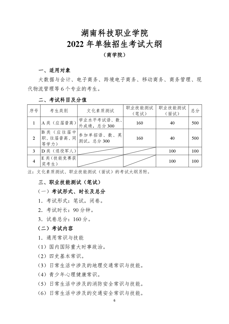 湖南科技职业学院2022年单独招生考试大纲.pdf