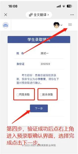 1、同意录取,按照下图逐步操作,完成录取确认手续。