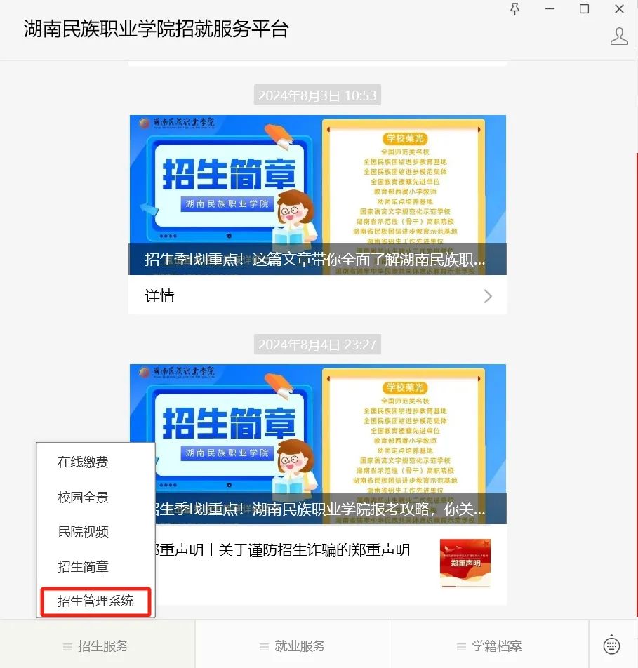 方式一:关注公众号“湖南民族职业学院招就服务平台”