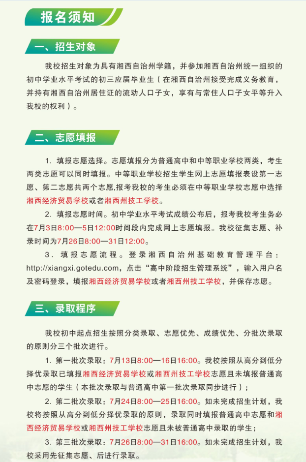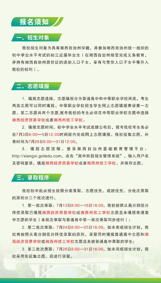 2023年初中起点招生简章