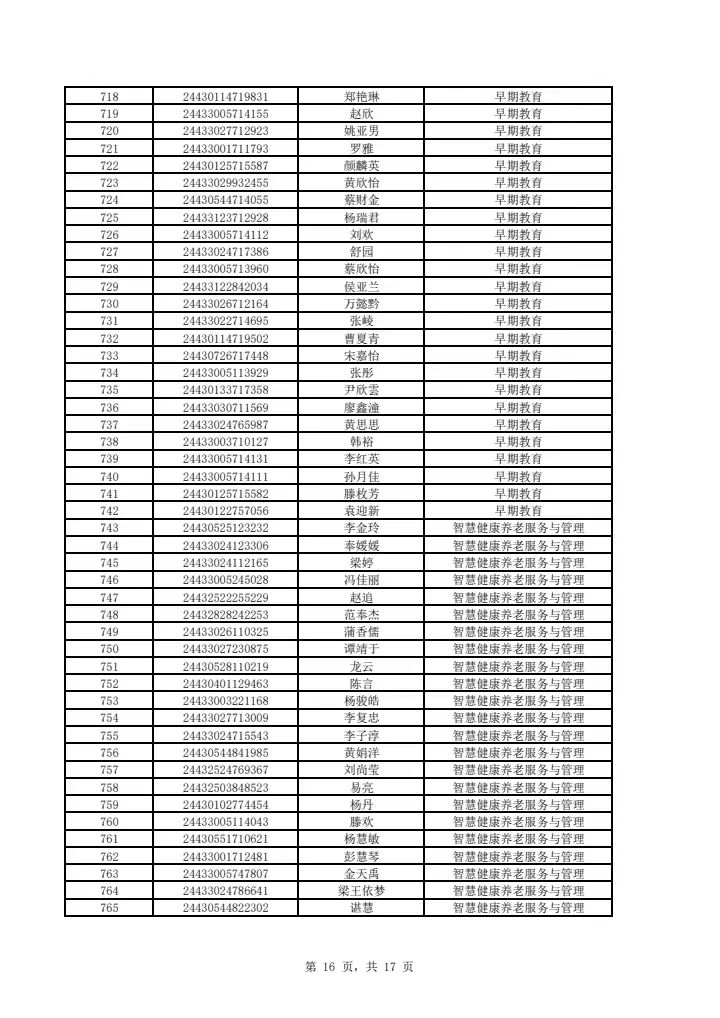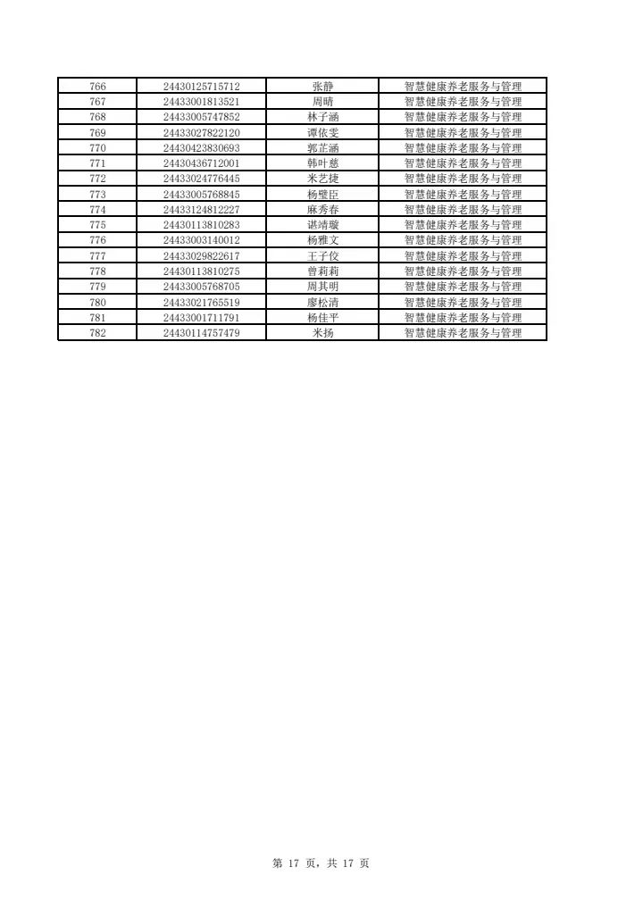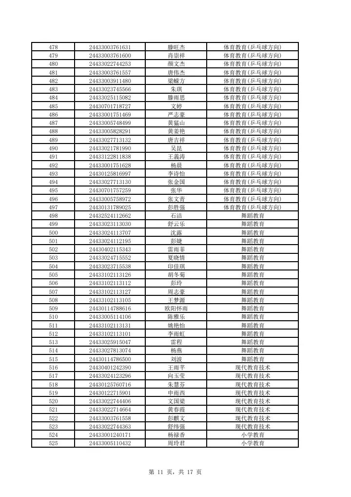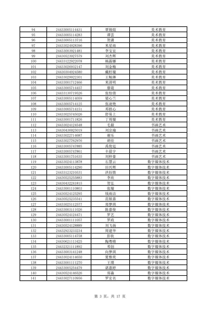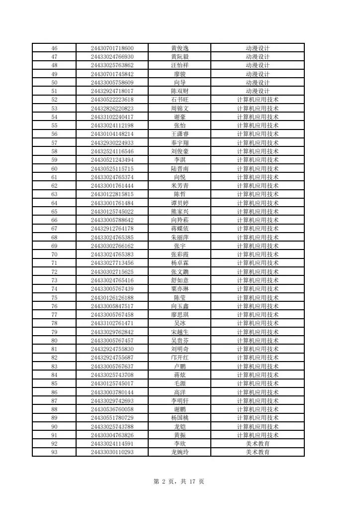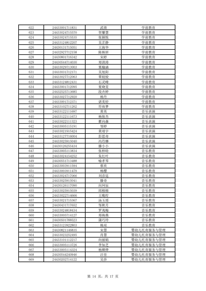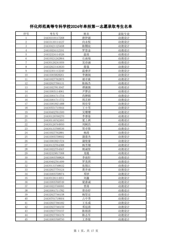 怀化师范高等专科学校2024年单独招生考试一志愿考生录取名单公示