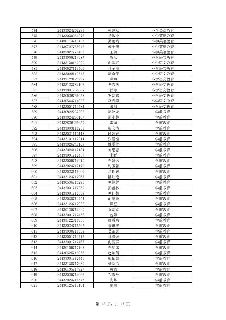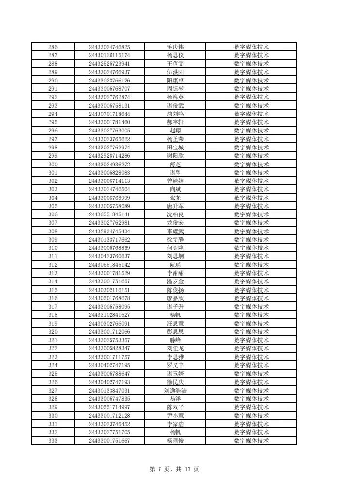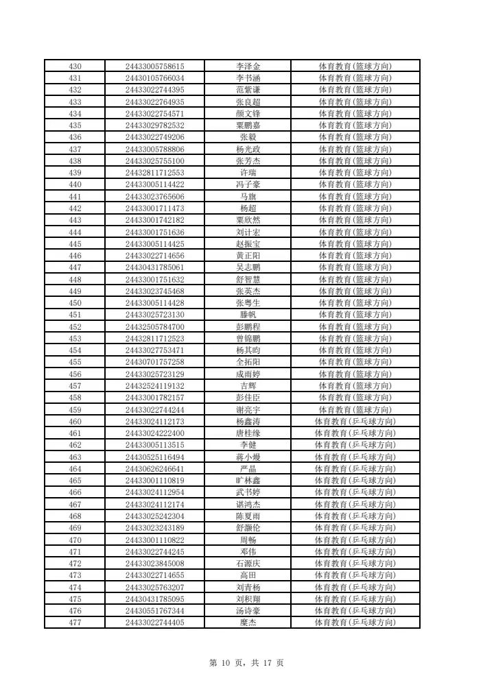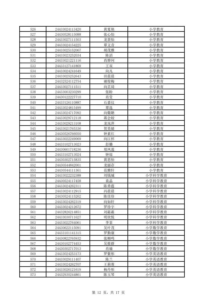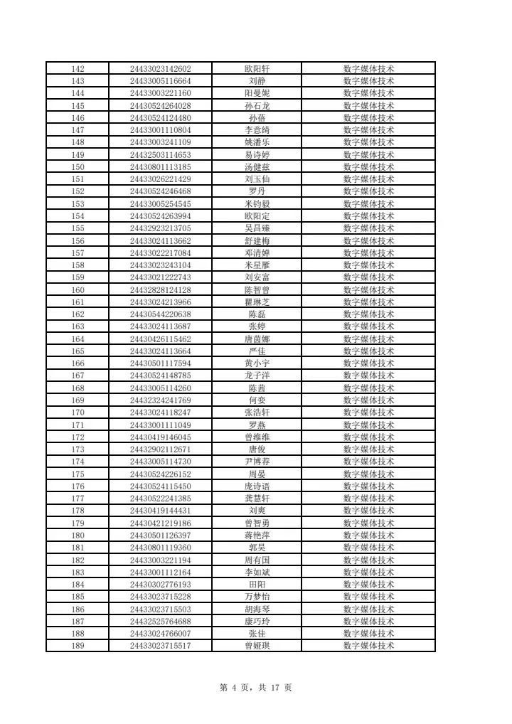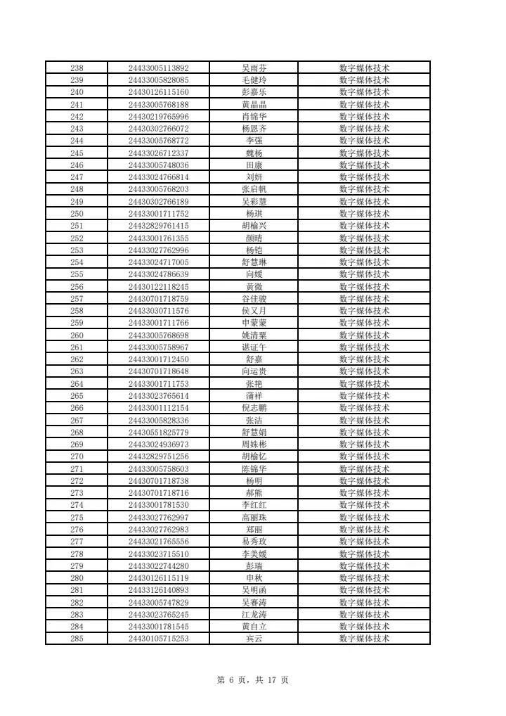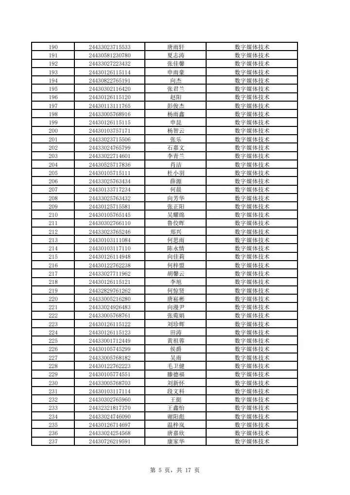 怀化师范高等专科学校2024年单独招生考试一志愿考生录取名单公示