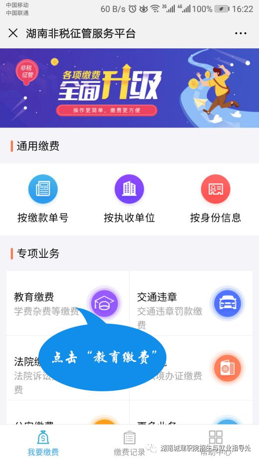 3、缴费主页面,点击“教育缴费”,进入查询页面;