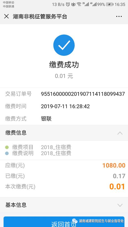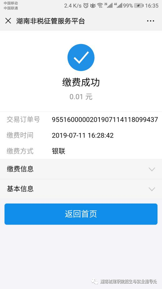 7、支付成功,点击“缴费信息”可查看已缴费的缴费项目;