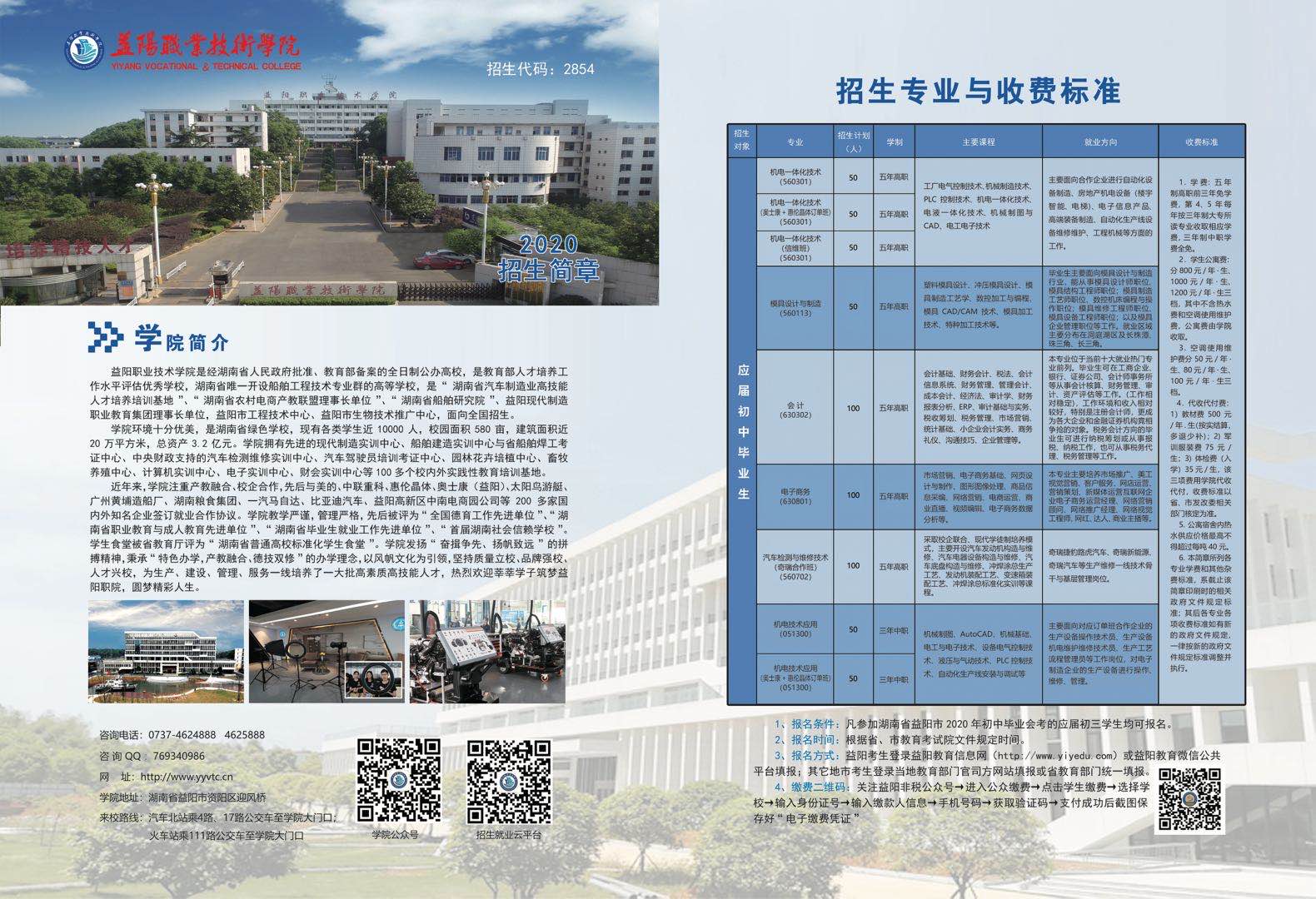 益阳职业技术学院2020年初中起点招生简章