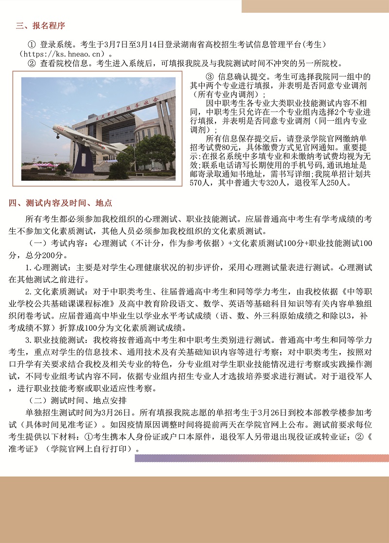 湖南国防工业职业技术学院2022年单独招生简章