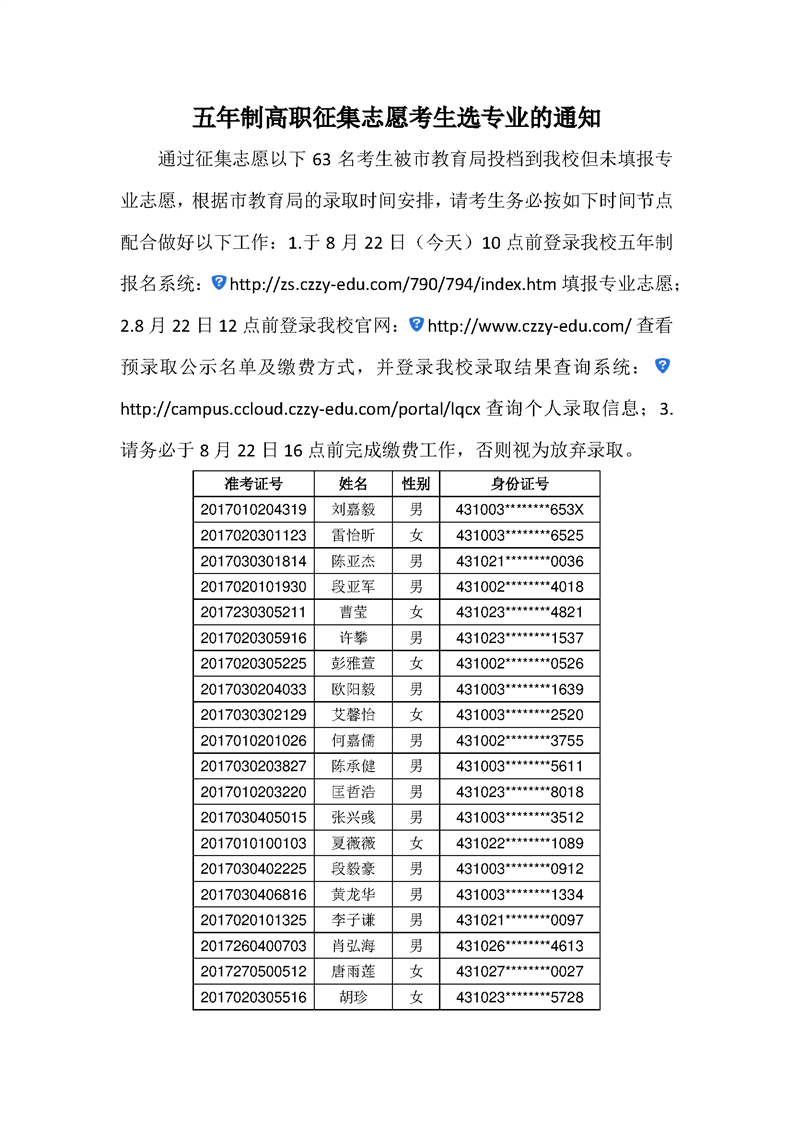 五年制高职征集志愿考生选专业的通知