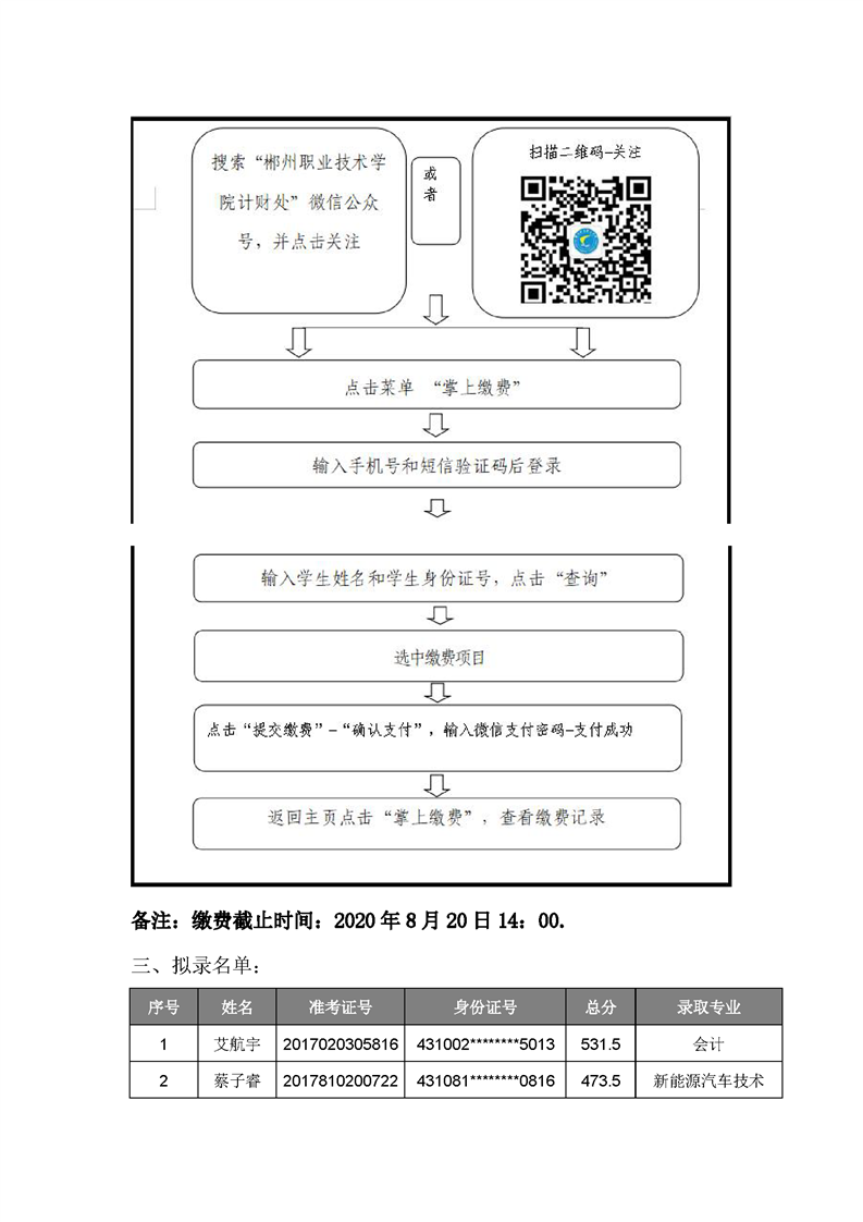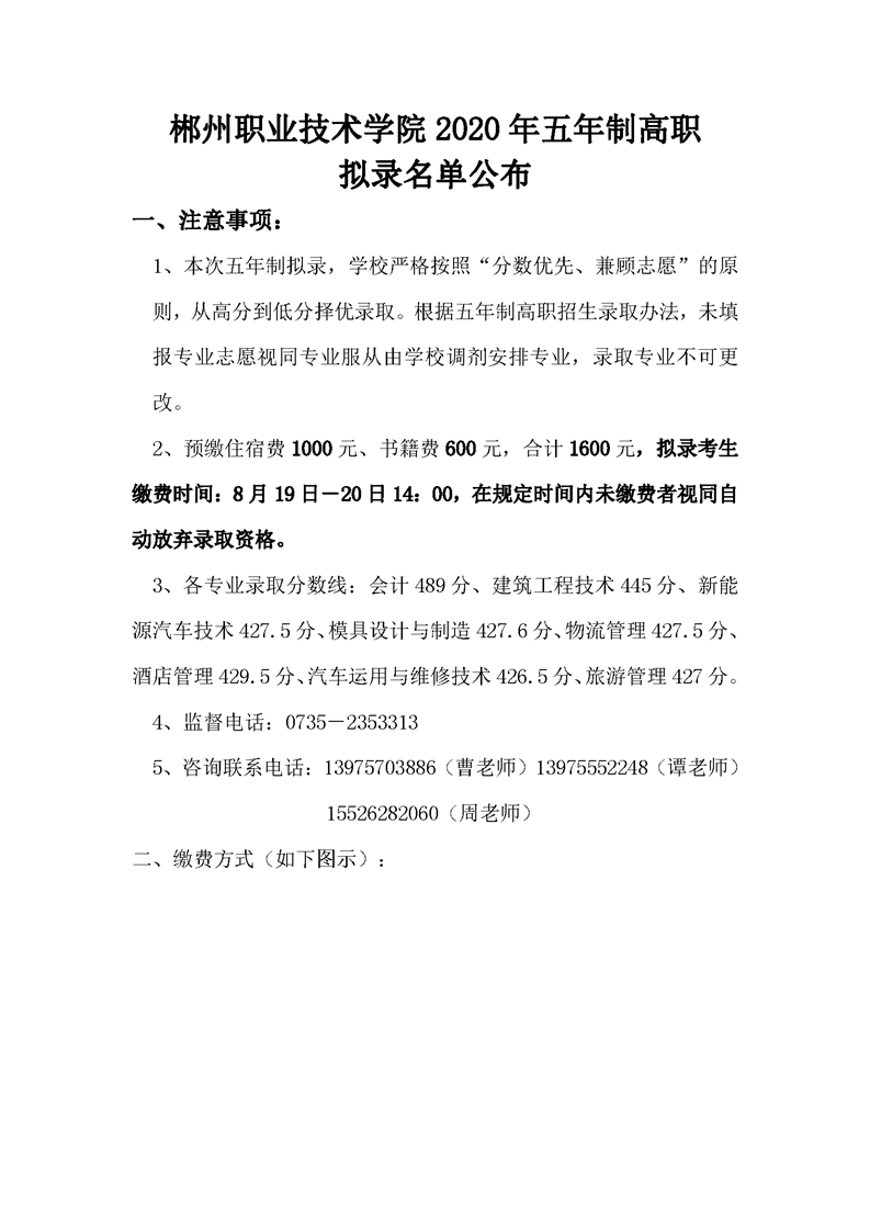 郴州职业技术学院2020年五年制高职拟录名单公布
