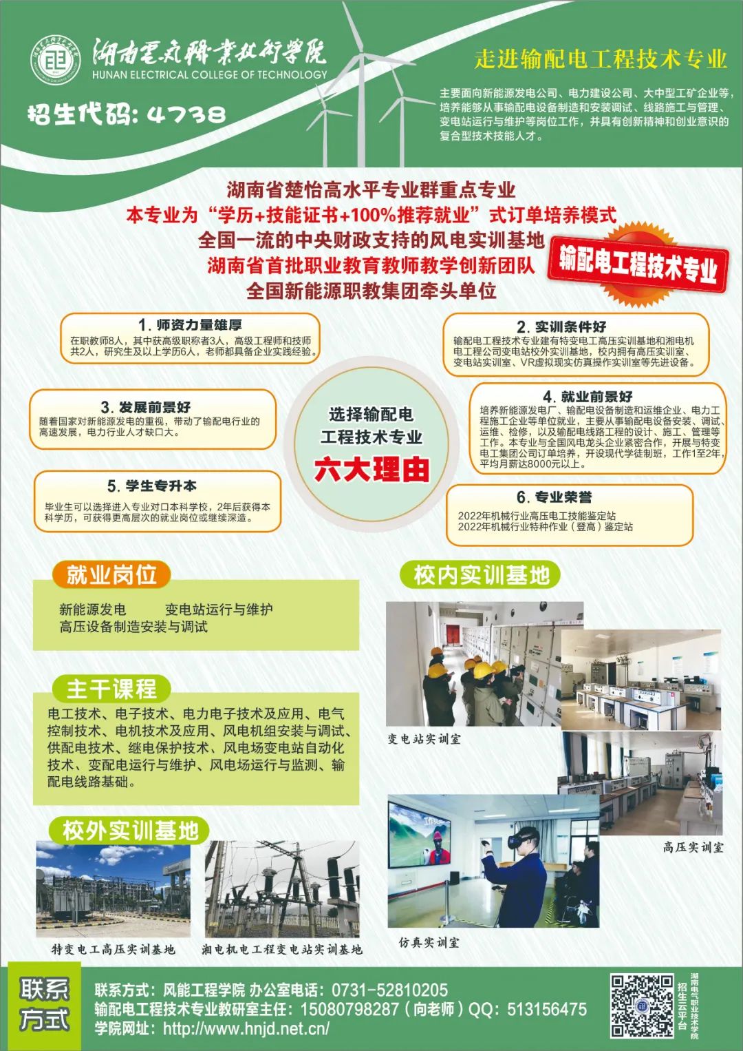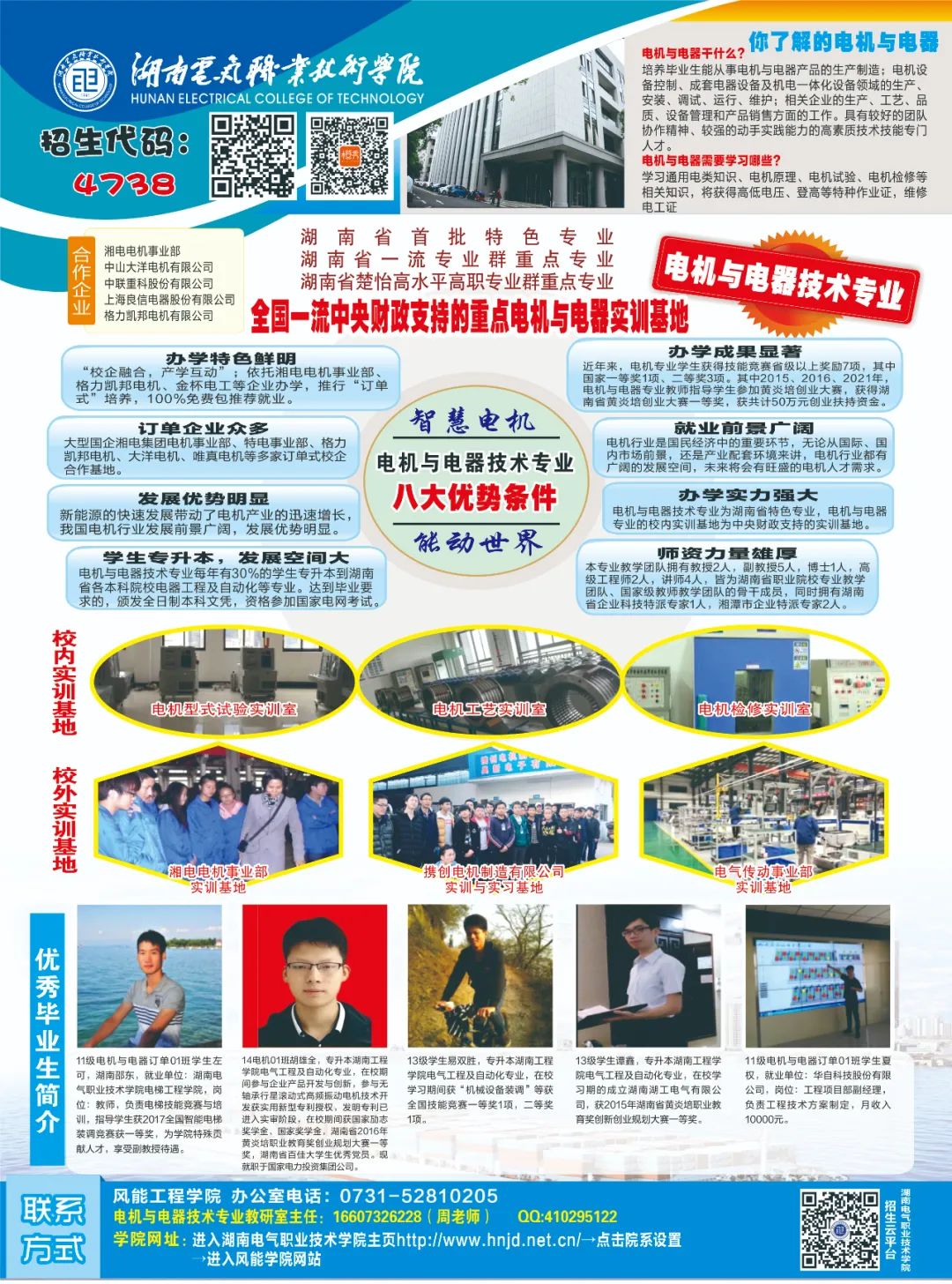 湖南电气职业技术学院是全日制公办高等职业院校,开办高职专业22个,现有学生近11000人,学校现有教职工400余人,具有高级专业技术职务的教师130余人。学院多次荣获国家职业教育教学成果奖,拥有1个国家级示范性职业教育集团,1个国家级教师教学创新团队,1个国家级众创空间、2个省一流特色专业群、2个湖南省高水平专业群,5个省级教学创新团队,1个省级工程研究中心,为全国机械行业骨干高职院校、全国机械行业校企合作与人才培养优秀职业院校、湖南省示范性(骨干)高职院校、湖南省楚怡高水平高职专业群建设计划(A档)建设单位,是教育部“智能制造产业领域现代学徒试点项目”建设单位。