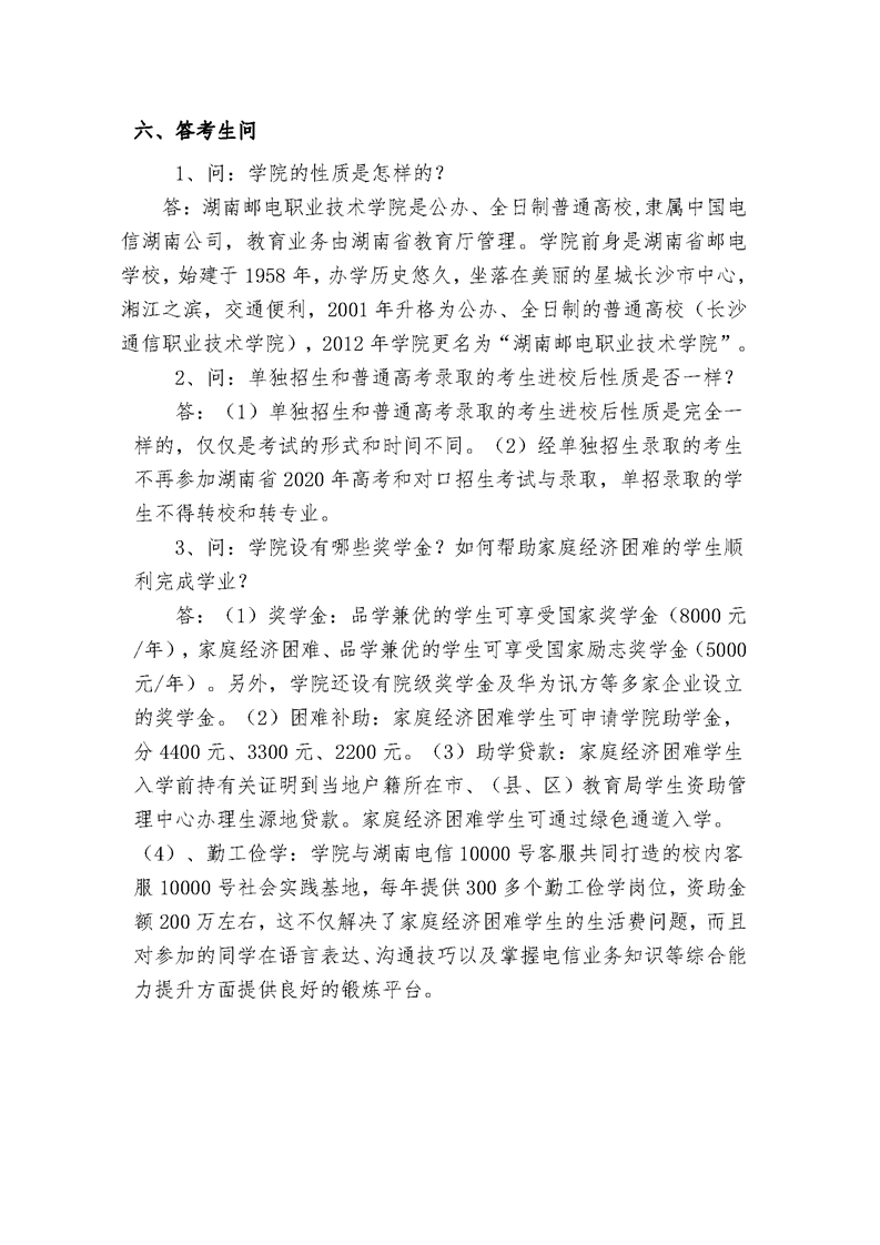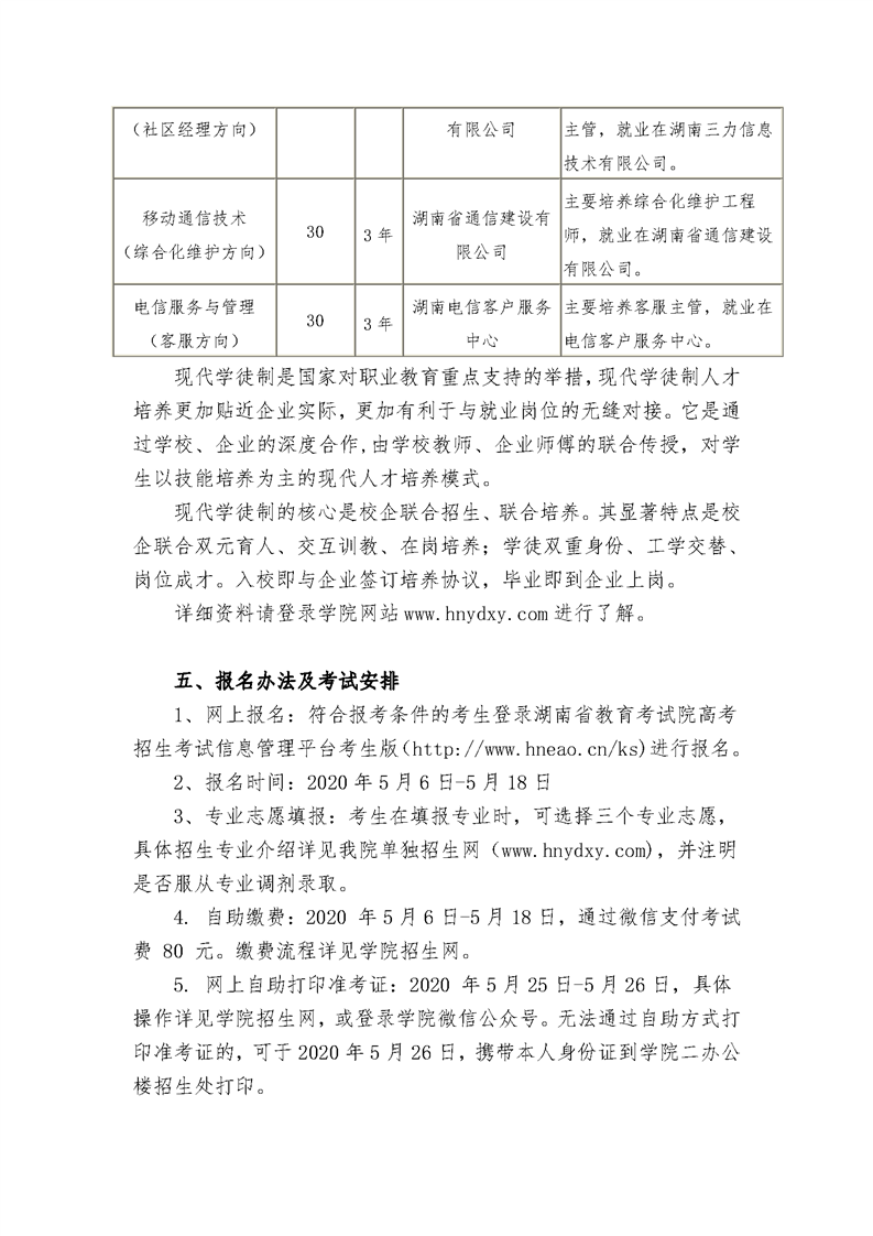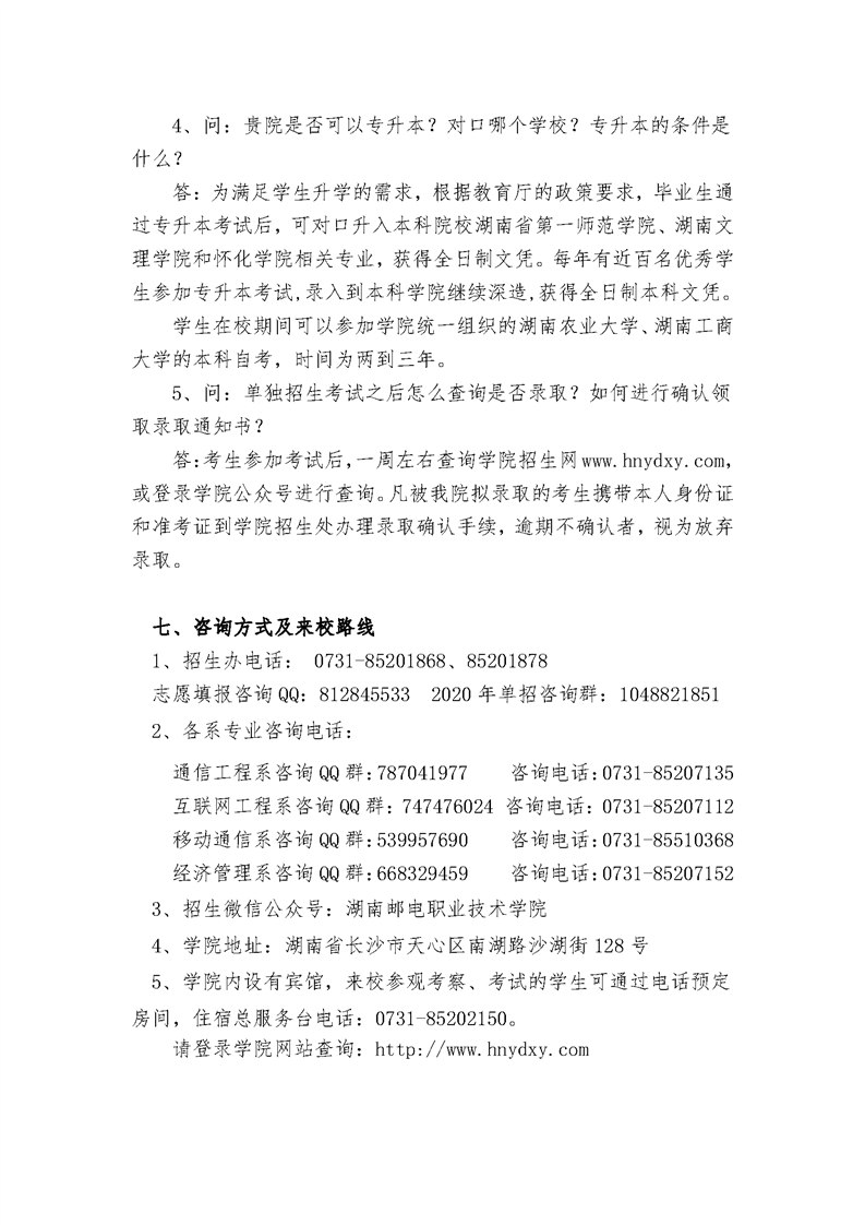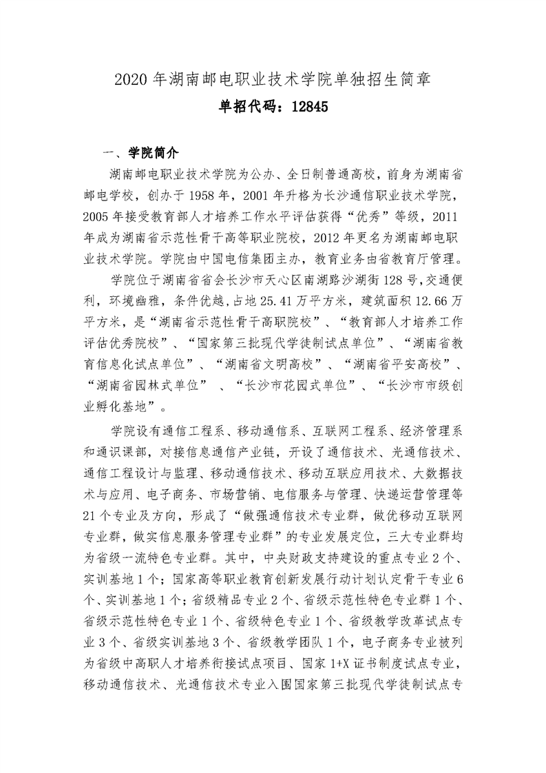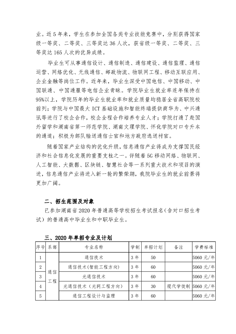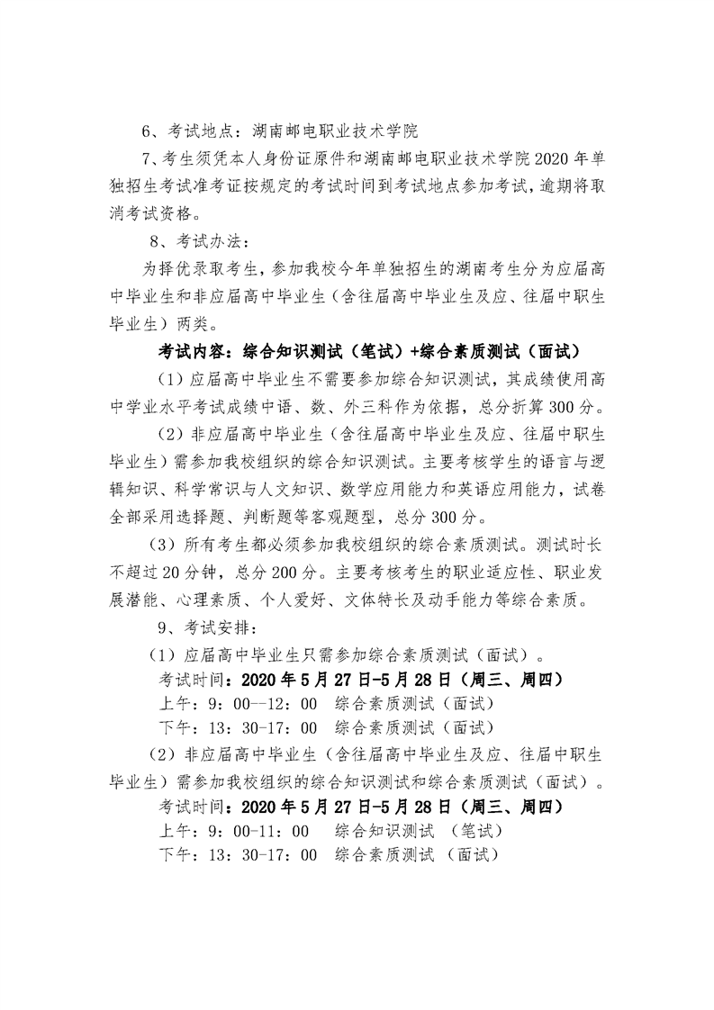 2020年湖南邮电职业技术学院单独招生简章