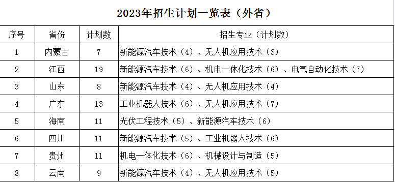 2023年招生计划一览表(外省)