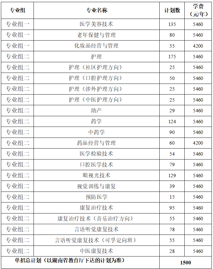 1.以上专业中,康复治疗技术专业设音乐治疗方向、言语听觉康复技术专业设可孚定向班,以上为校企合作订单班。护理专业设有社区护理方向、口腔护理方向、涉外护理方向、中医护理方向。