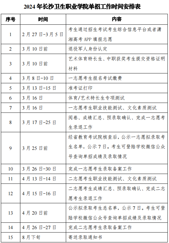 5.艺术体育特长生资格审查:2024年3月10日前将证明材料,通过发送邮箱2850718014@qq.com交由我校招生就业处审核,具体按照《长沙卫生职业学院2024年艺术、体育特长生高职单招方案》执行。