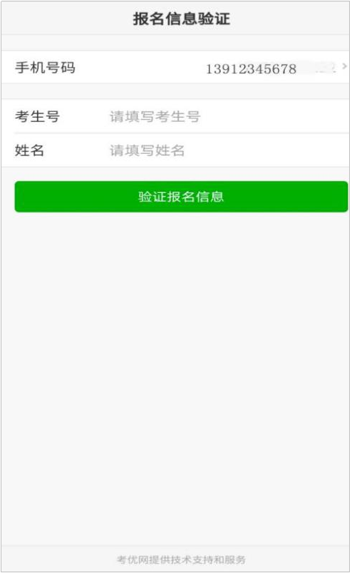 考生填写自己的考生号、姓名、身份证号信息,系统验证考生信息是否正确,是否报考我校。