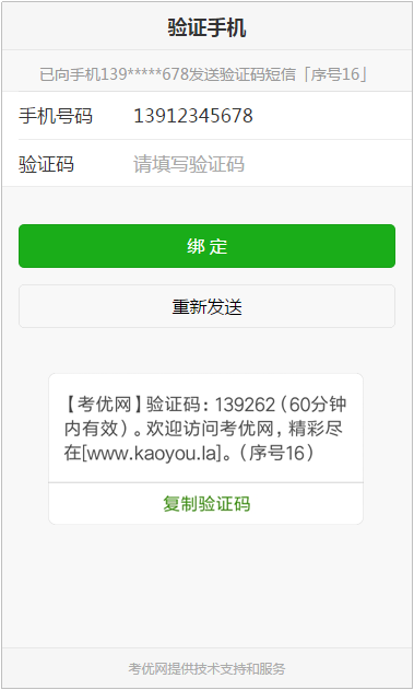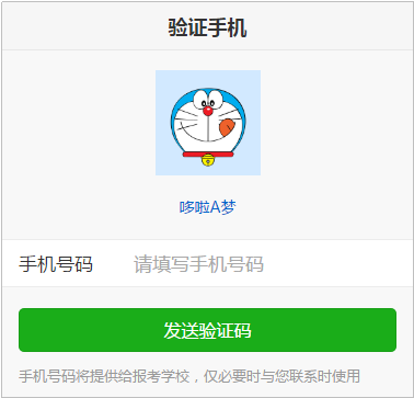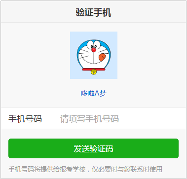 为便于联系考生,缴费前需验证考生联系电话的有效性。系统向考生手机发送随机验证码短信,考生收到验证码短信后,填写收到的验证码完成验证。