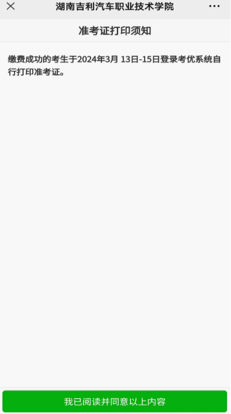 考生须在湖南省普通高校招生考试考生综合信息平台(网址 https://ks.hneao.cn)或"潇湘高考"APP报考我校,方可进行缴费,打印准考证。在网上缴费确认交易时,应查看收款方是否为“湖南吉利汽车职业技术学院”,如果不是,请立即停止付款,并电话告知我校。缴费成功后因考生放弃考试等原因导致不能参加考试或考试无效,报考费不予退还。