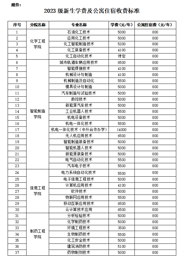 学费、公寓住宿费:切记报到现场不办理学费、公寓住宿费的现金及刷卡交费业务,请于报到前,按照2023级新生缴费说明进行微信支付(吉林工业职业技术学院官方网站(www.jvcit.edu.cn)招生信息栏,或微公众号中搜索“吉林工业职业技术学院招生就业”微信公众号)。【附件:2023级新生收费明细表】。