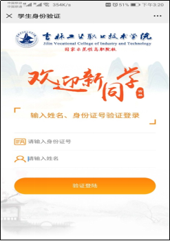 2、在学生身份验证界面填入新生的身份证号和姓名