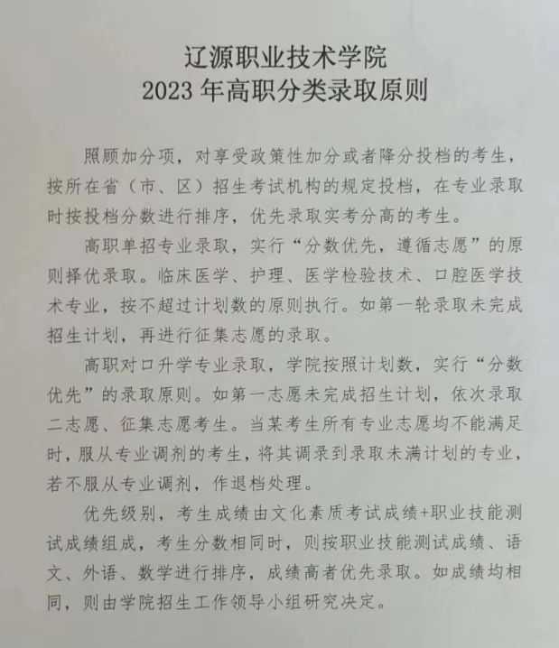 2023年高职分类录取原则