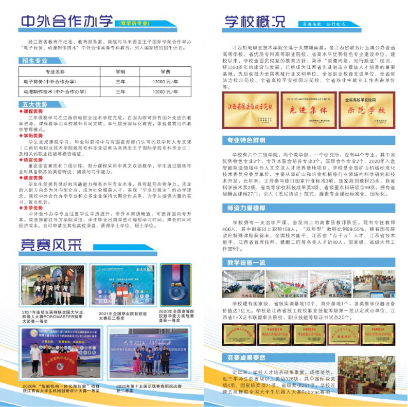 江西机电职业技术学院2022年单招招生简章