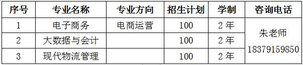2.招生专业:3个,计划300人,学制2年,培养地点在江西省商务学校(南昌市新建区新城大道1888号),由双方共同组建教学团队,共同制定人才培养方案,共同开展教育教学工作。具体如下: