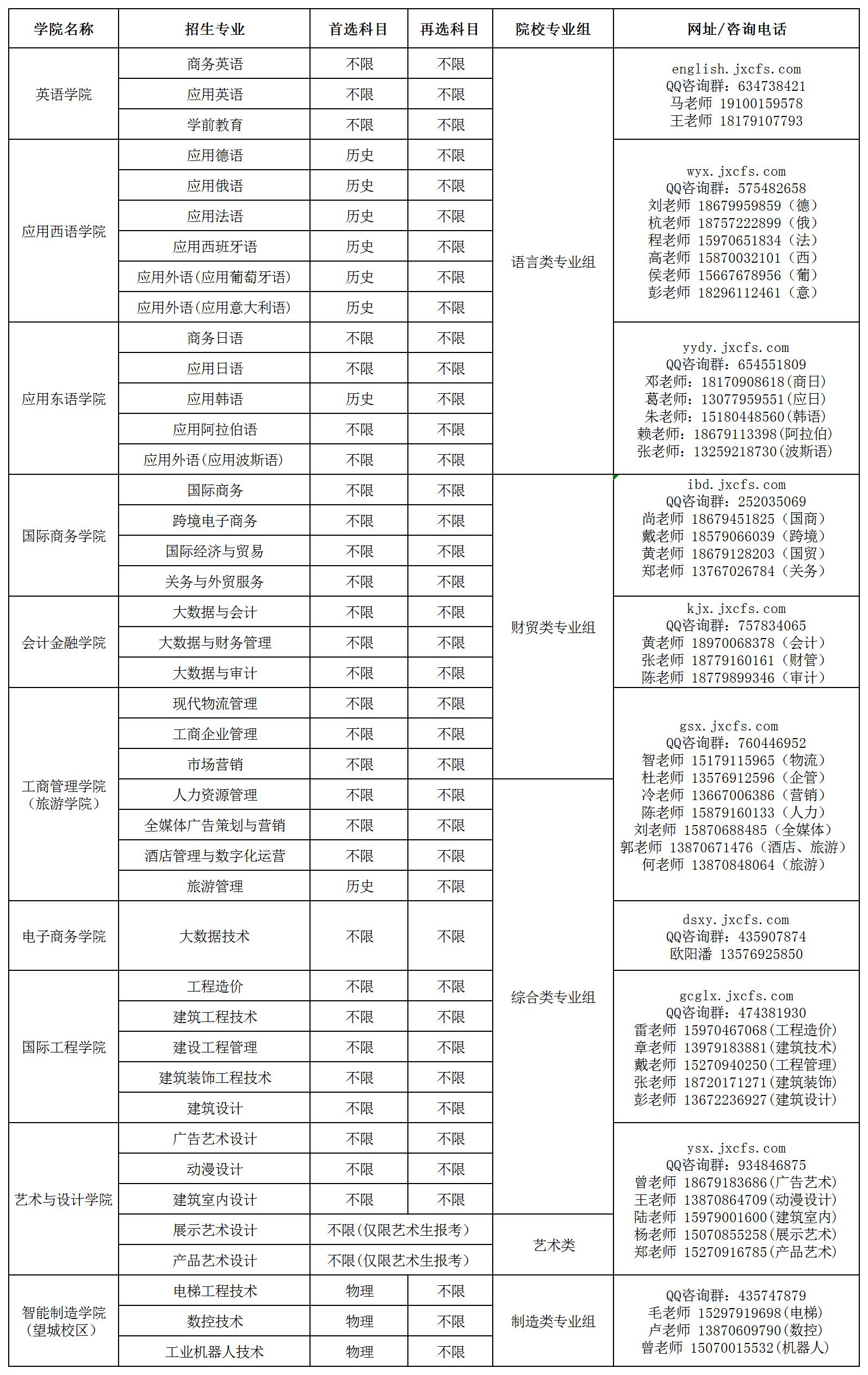 各科类招生计划详见2024年统招分省分专业计划表:https://zs.jxcfs.com/info/1049/1659.htm