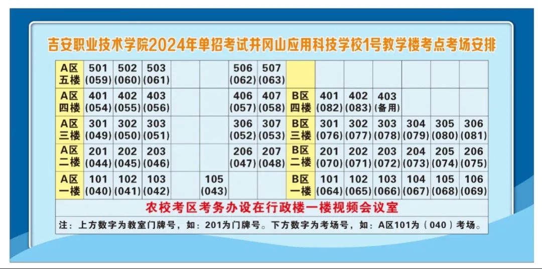2.井冈山应用科技学校考点:3月16日高职单招考试40-83考场