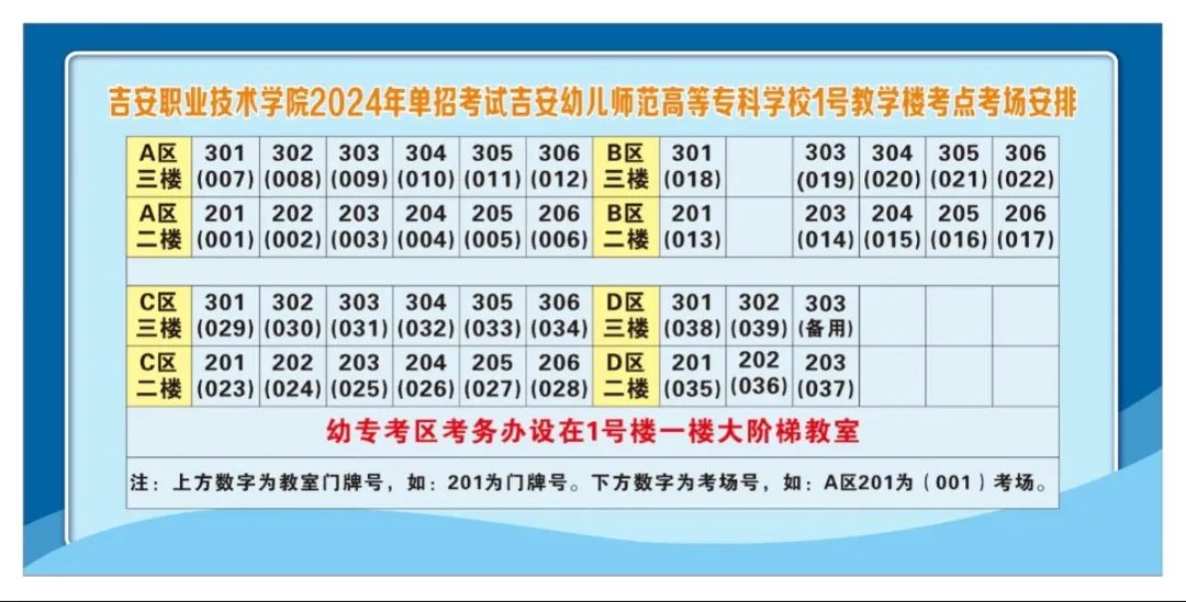 2024年,吉安职业技术学院高职单招考试完全按考生专业组别、第一专业志愿及其对应的专业大类安排考场。