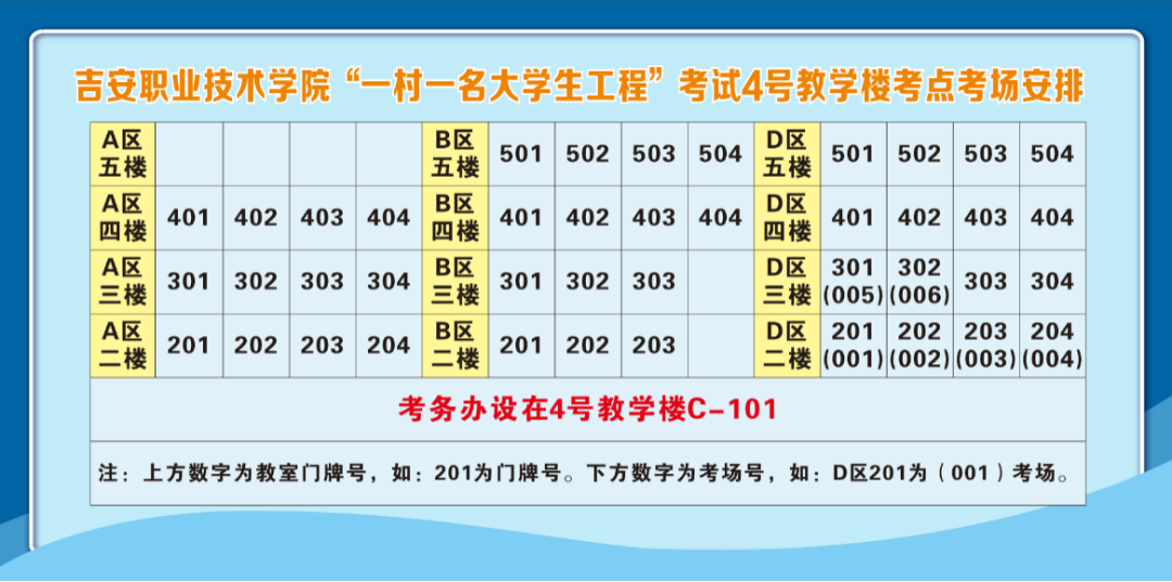 3月17日“一村一名大学生工程”专项考试地点为吉安职业技术学院(校本部)考点4号教学楼。