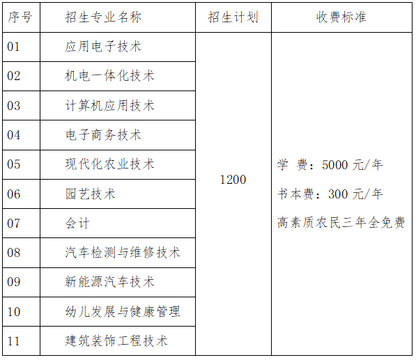 招生专业及收费标准
