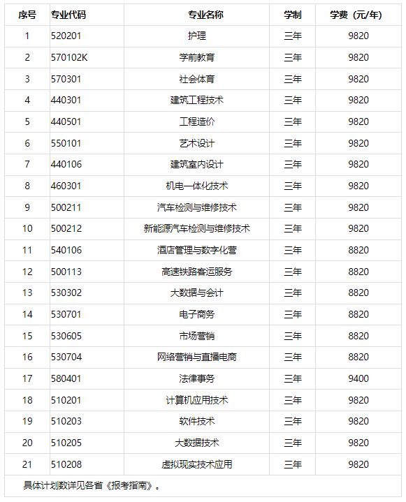 第三章招生计划及收费标准第八条招生专业和招生计划