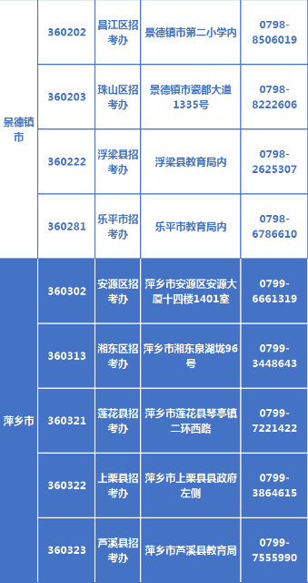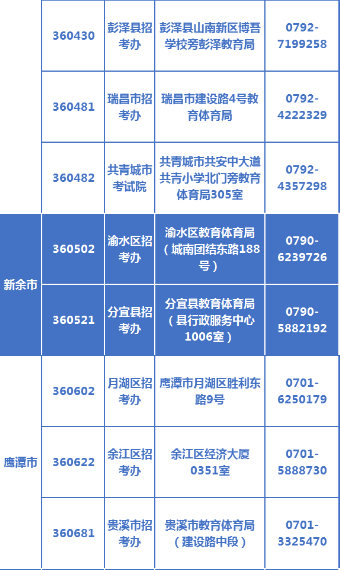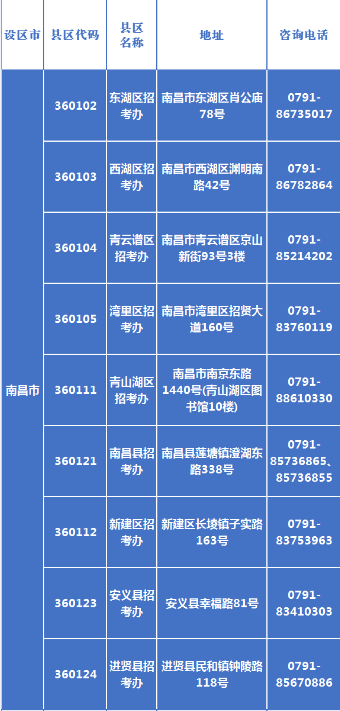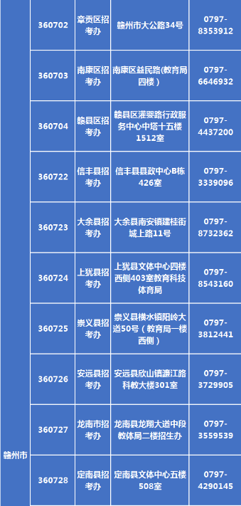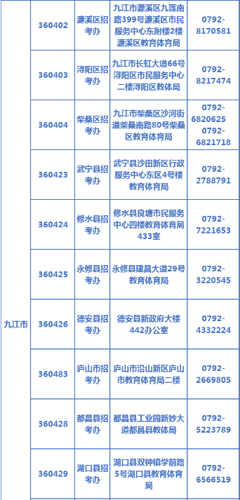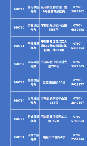 江西省2020年普通高考报名各县(区)招考办联系方式(供考生查询)