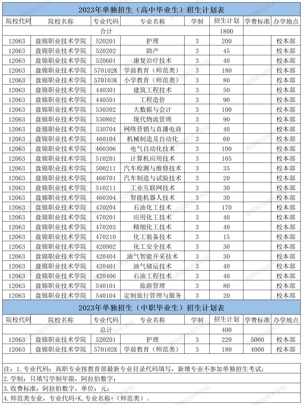 2023年单独招生招生计划表