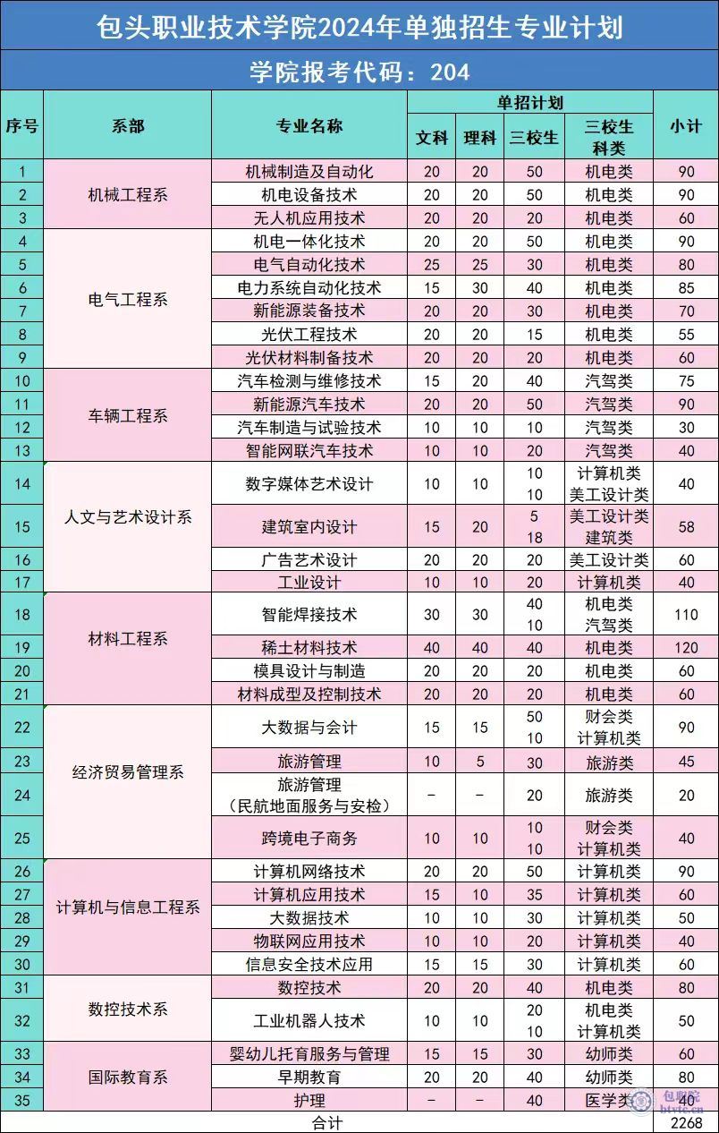 一、2024年单独招生计划