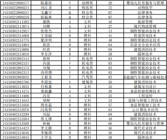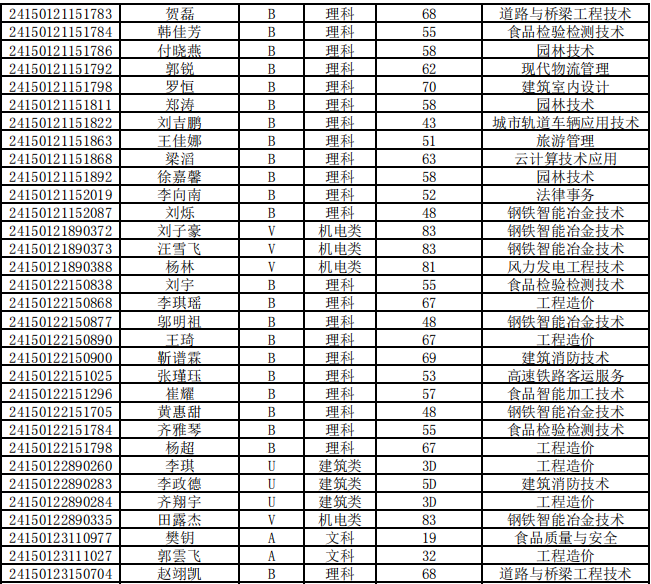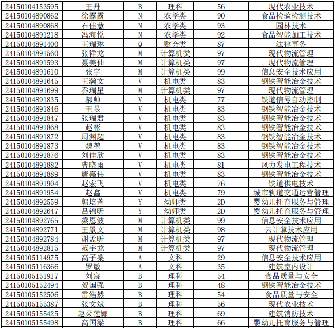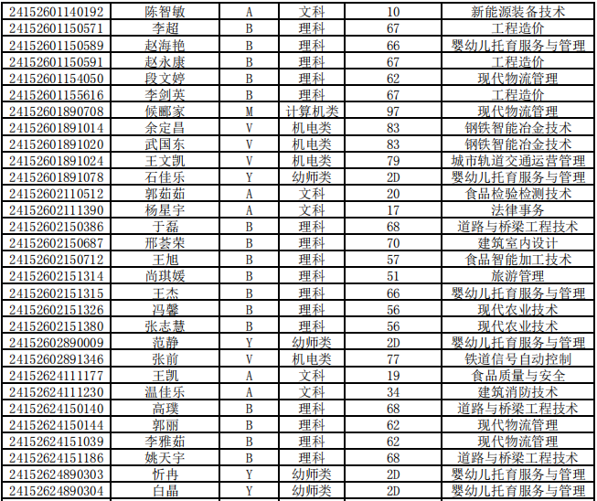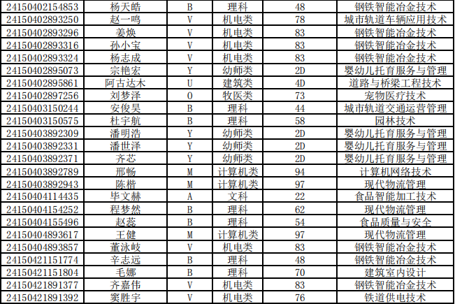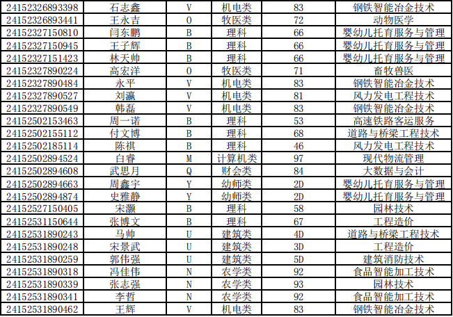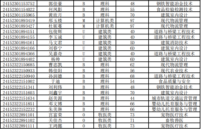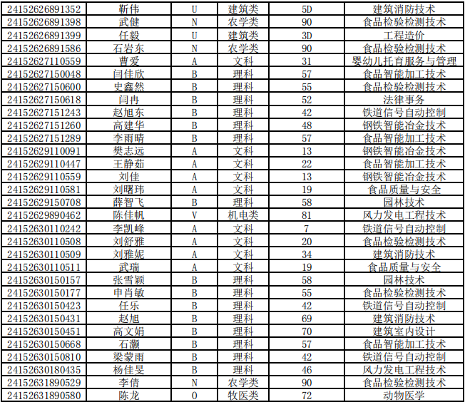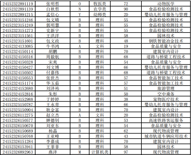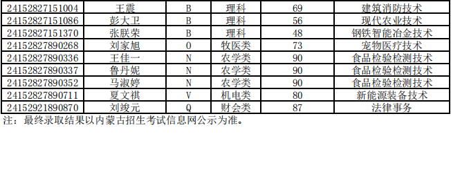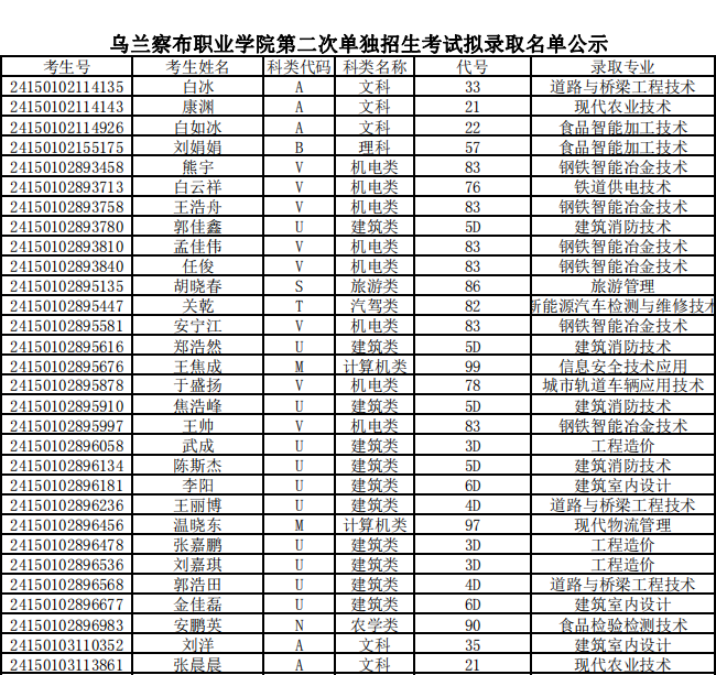 乌兰察布职业学院第二次单独招生考试拟录取名单公示