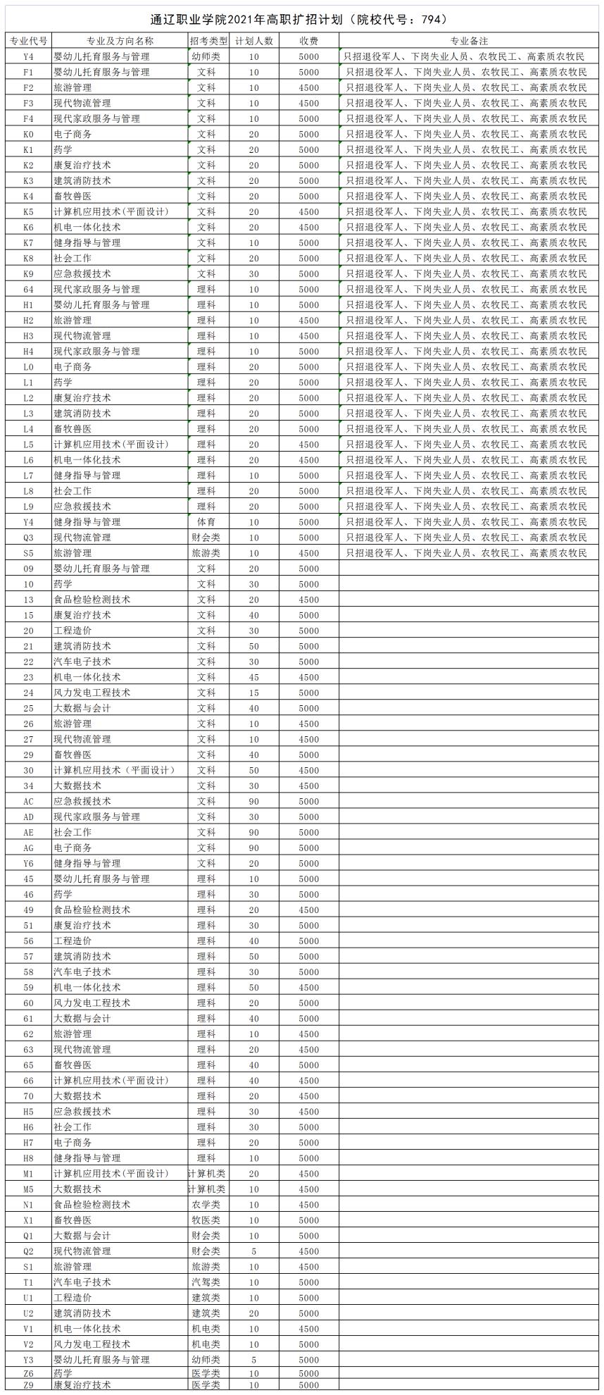 通辽职业学院(通辽乡村振兴学院)2021年高职扩招简章