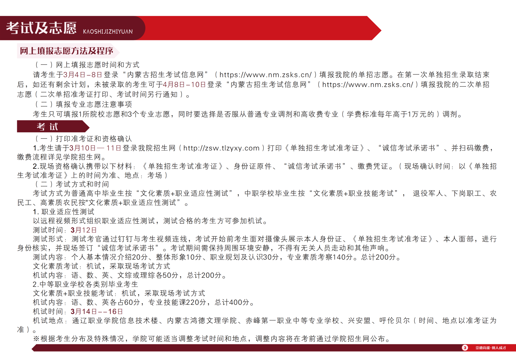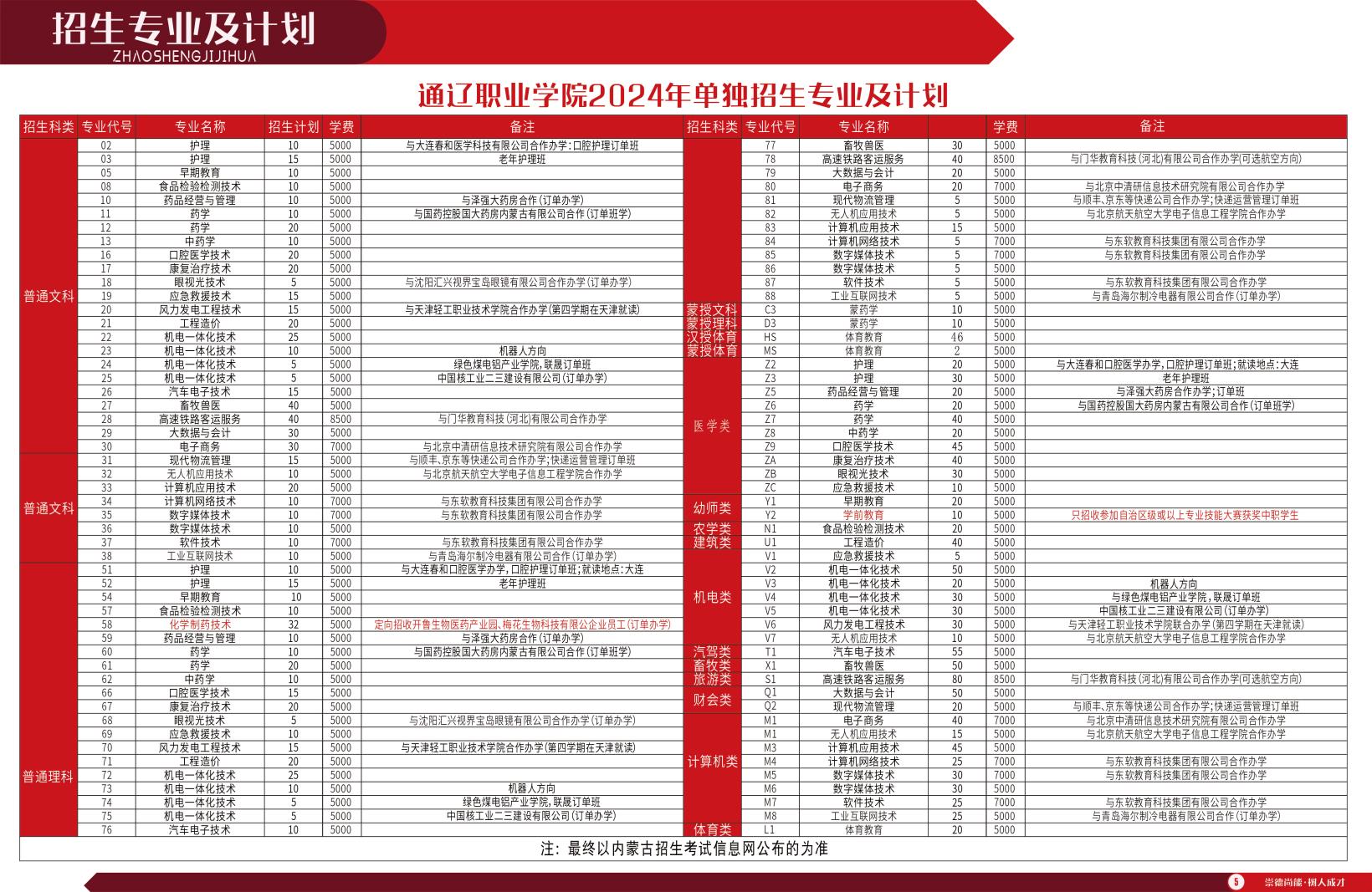 2024年通辽职业学院单独招生简章