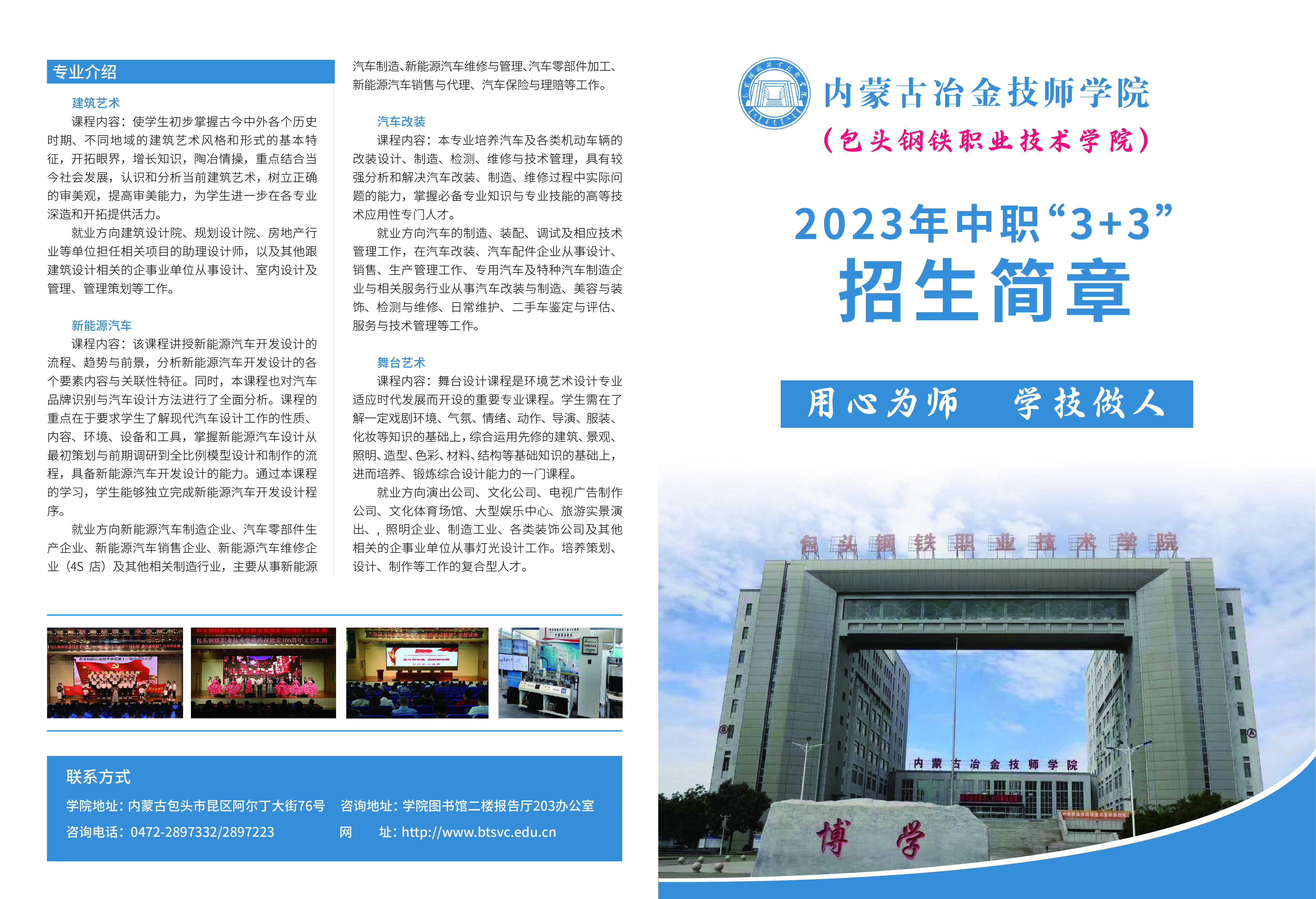 内蒙古冶金技师学院2023年中职3+3招生简章