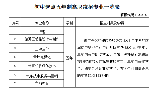 1、报考我院五年制高职的考生须参加各盟市组织的初中毕业升学考试,8月2日至6日全区统一网上填报志愿;未参加当年中考的学生到校报名。