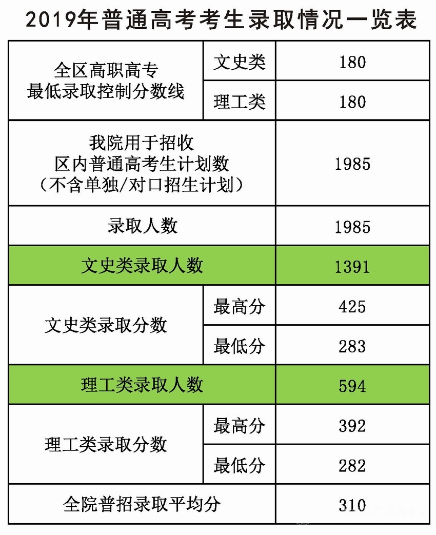 我院2019年普招录取情况表