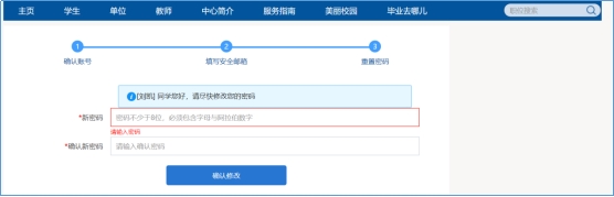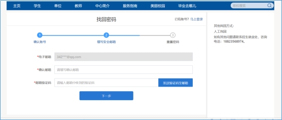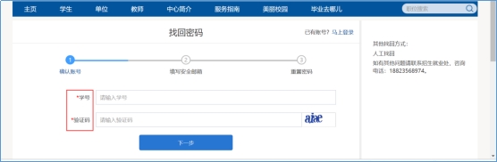 输入学号和验证码,进入找回密码第二步,如图: