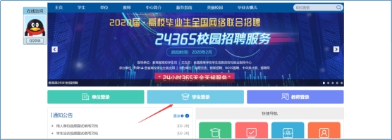 打开就业信息网首页,点击学生登录,如图: