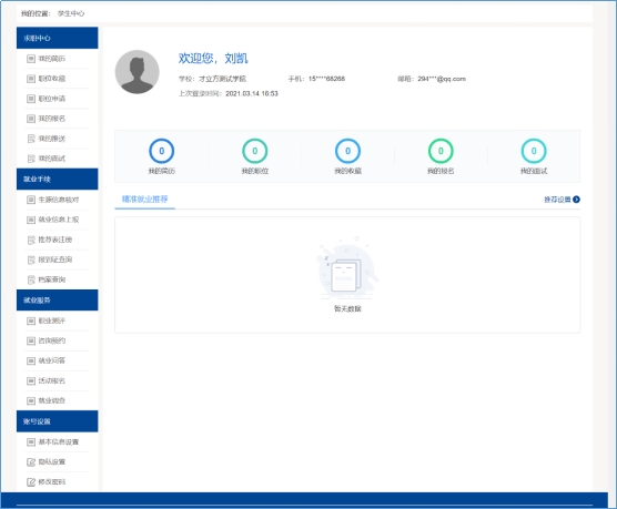 包括系统通过精准匹配推荐的职位、也包括系统推送中心推送的职位,在个人中心选择【我的推送】,打开推送页面如图: