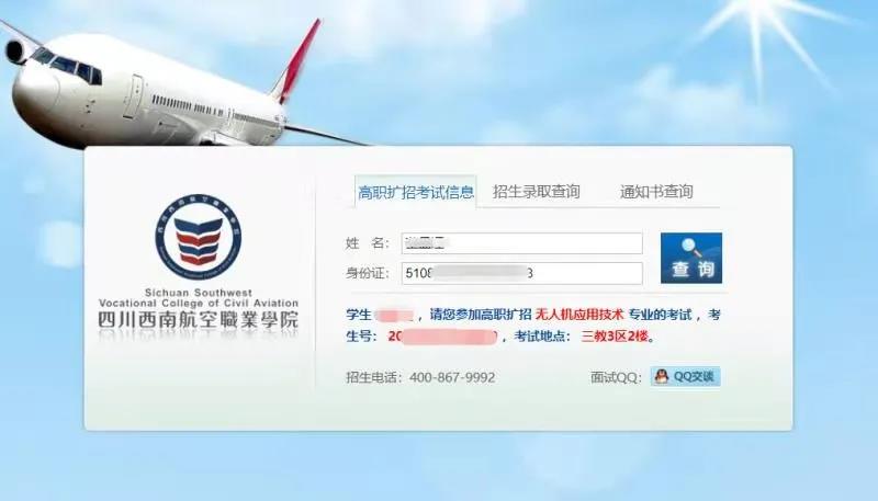 第一步:请考生于2020年11月17日-21日登录四川西南航空职业学院招生网http://www.xnhkxy.edu.cn/AdmissionInquiry/查询个人考试信息并截图保存。